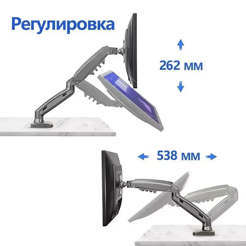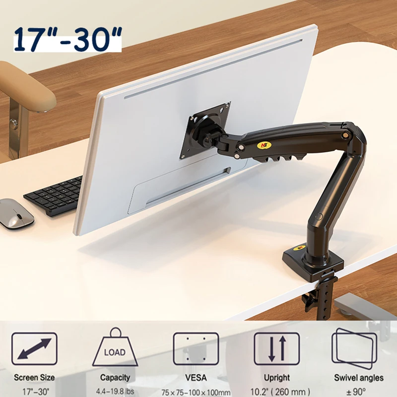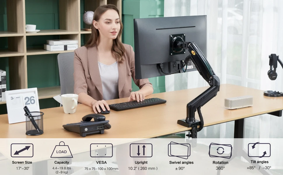 • Diseño de movimiento completo: el soporte del brazo del monitor de PC presenta un diseño de movimiento completo, lo que permite un ajuste perfecto del ángulo y la posición para una comodidad de visualización óptima.