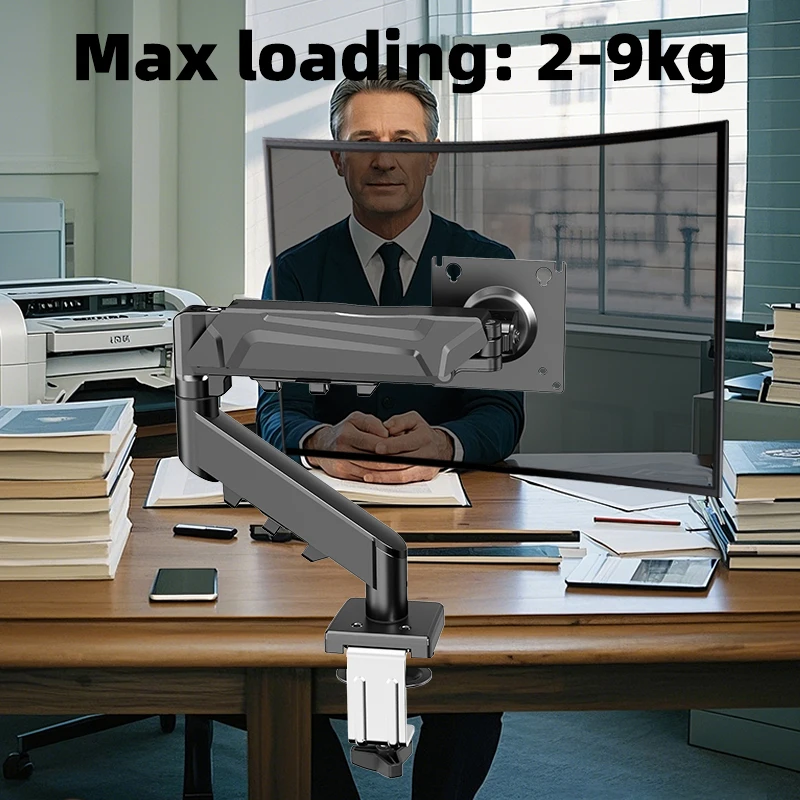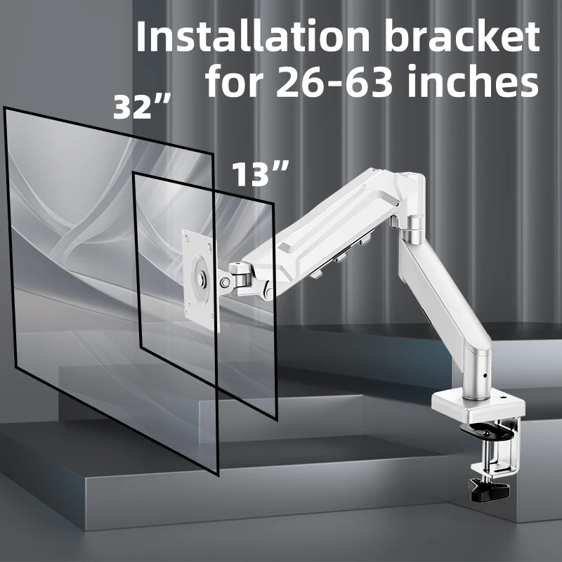 Soporte de monitor de resorte de gas ajustable, brazo de pantalla de computadora de hierro blanco y negro, rotación multiángulo de fácil instalación, compatible con monitores de 13-32 pulgadas