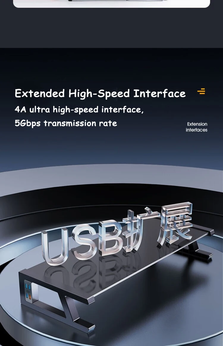 Admite la expansión de 4 puertos USB, se puede usar al mismo tiempo teclado y mouse, disco duro móvil y otros dispositivos USB, los accesorios USB se pueden ensamblar en ambos lados según la demanda.