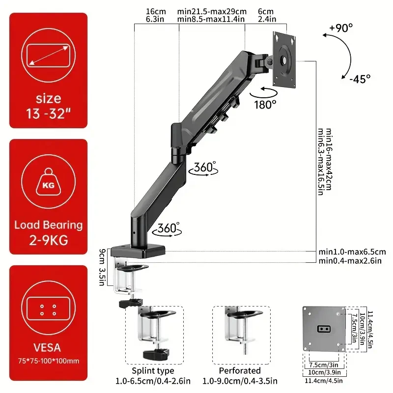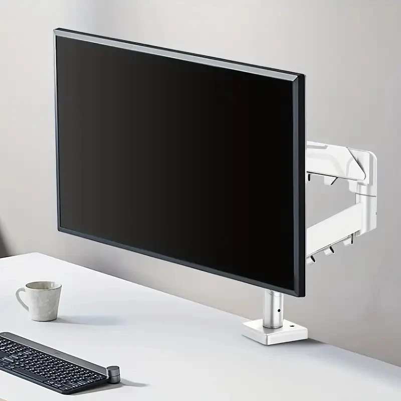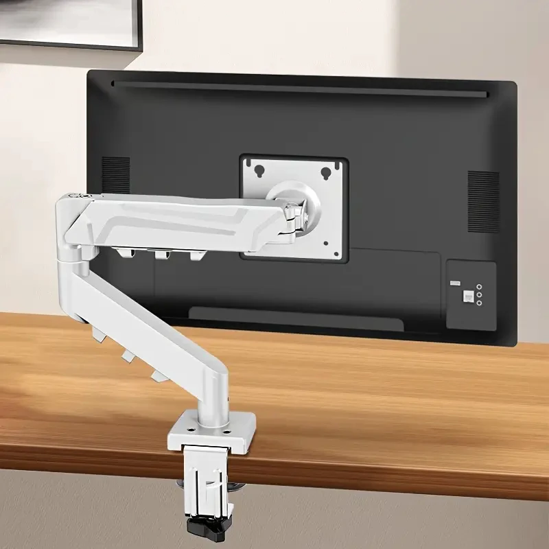 Soporte de monitor de resorte de gas ajustable, brazo de pantalla de computadora de hierro blanco y negro, rotación multiángulo de fácil instalación, compatible con monitores de 13-32 pulgadas