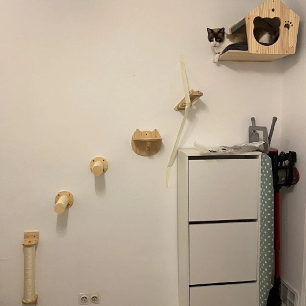* Juguetes: el propietario puede poner los juguetes favoritos del gato en la pared del gato y el gato se subirá para jugar con el juguete.