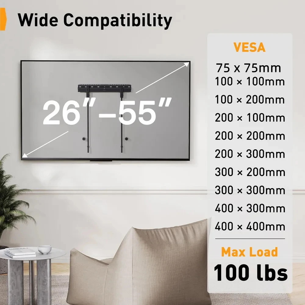 Soporte de montaje en pared de TV fijo Universal para la mayoría de televisores planos/curvos de 25-55 pulgadas Max VESA 400X400mm soporte de TV de perfil bajo fácil de instalar