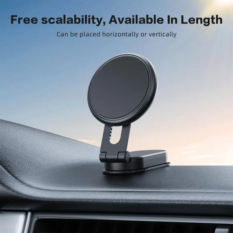 * Magnetic accessory: Provides secure and immediate installation for compatible mobile phones with strong magnetic force.* Foldable and expandable design: Offers adjustable length and compact storage space when not in use, allowing for various placements.* 360-degree rotation: Allows for horizontal or vertical screen orientation, enabling optimal viewing with one hand.