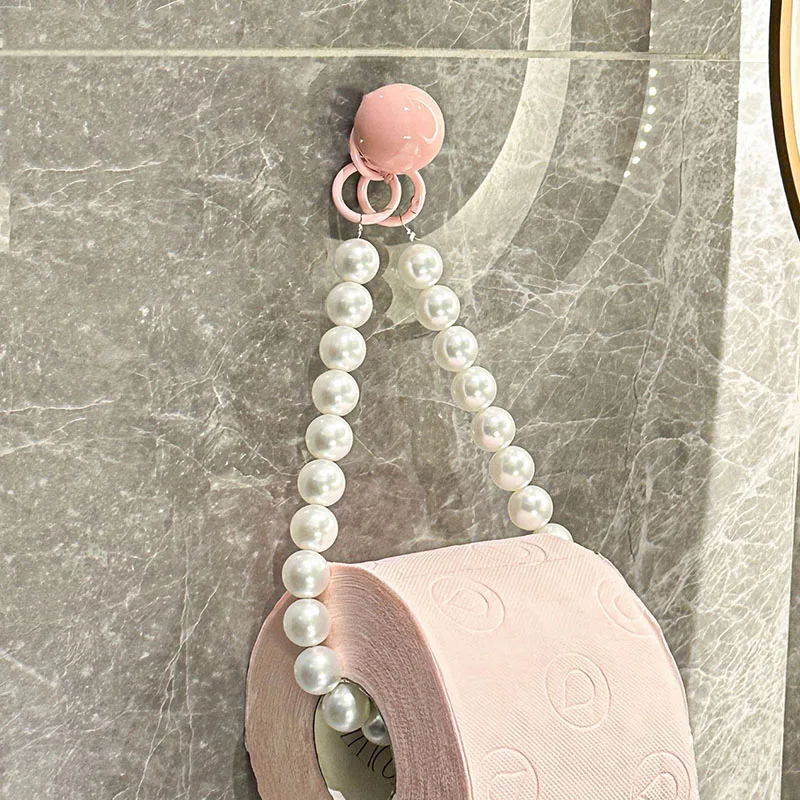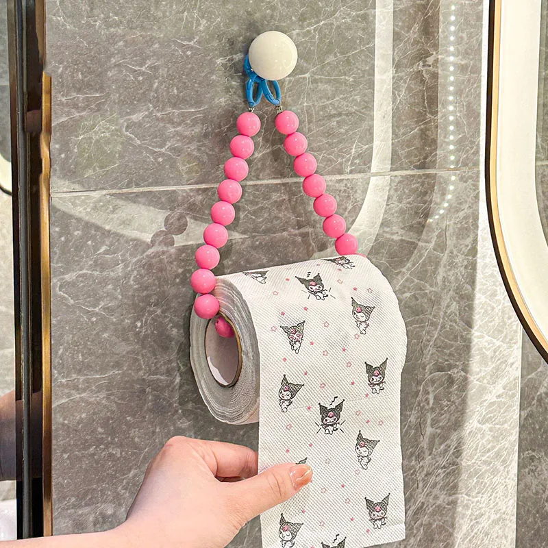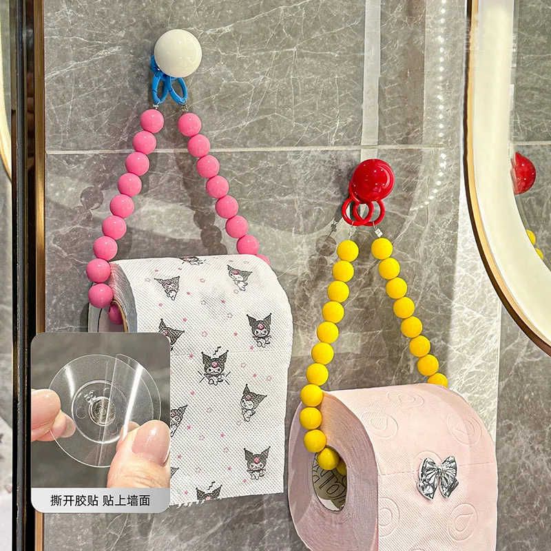 Soporte para pañuelos con cuentas colgante de dopamina, soporte multifuncional para rollo de papel higiénico sin perforación, soporte decorativo para pared