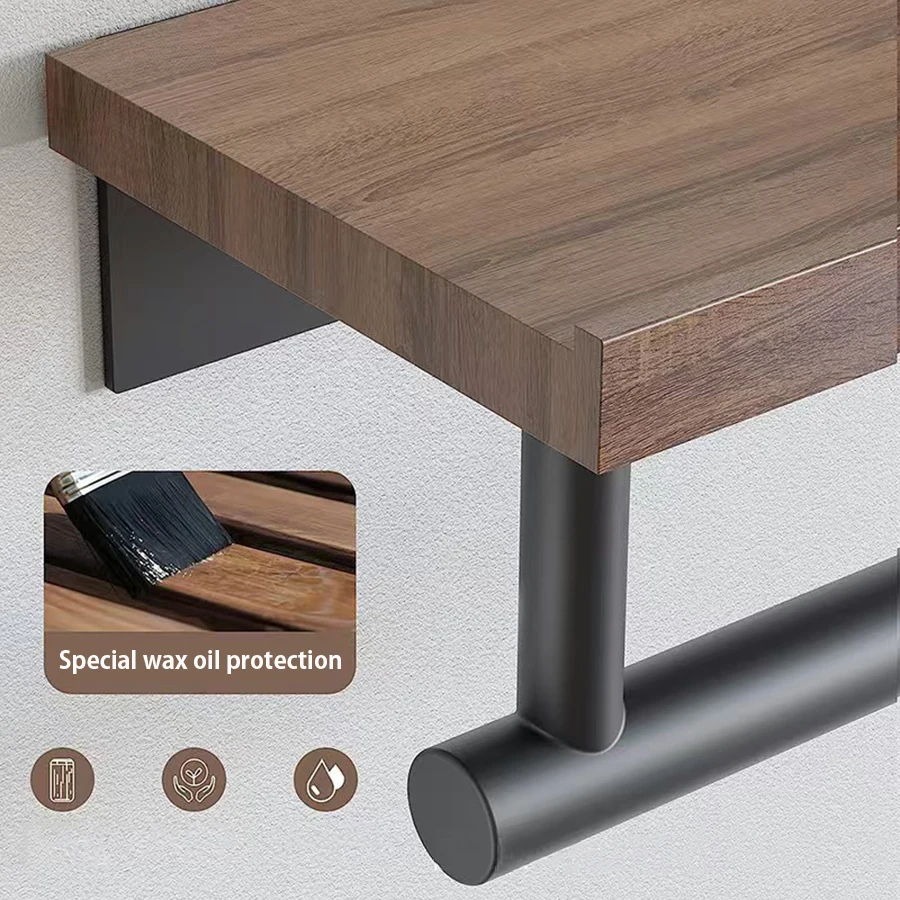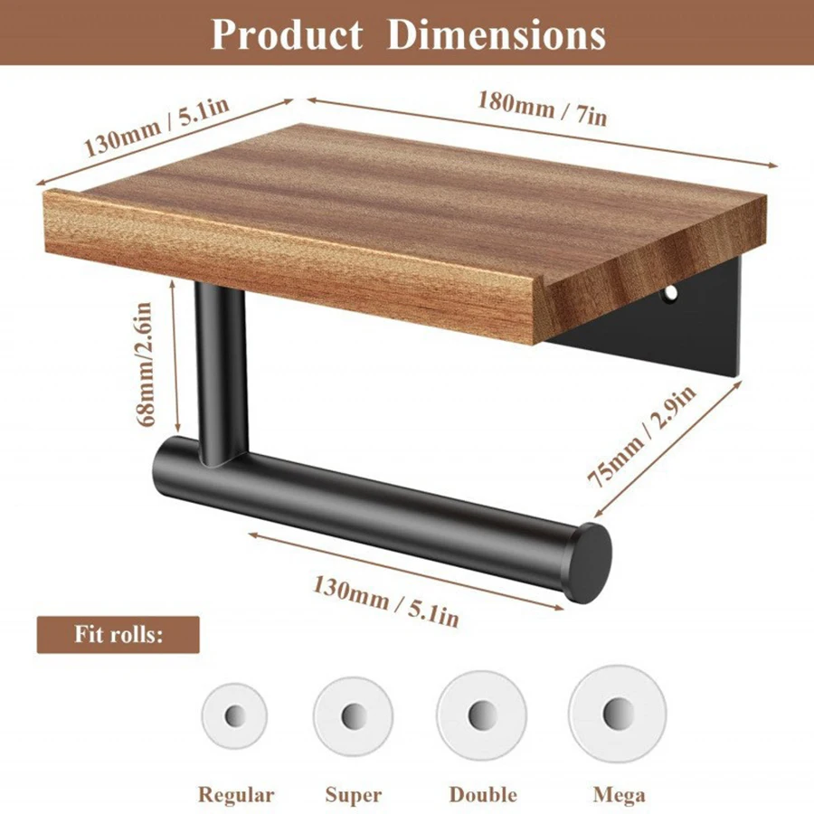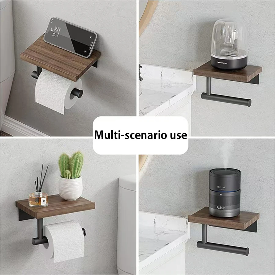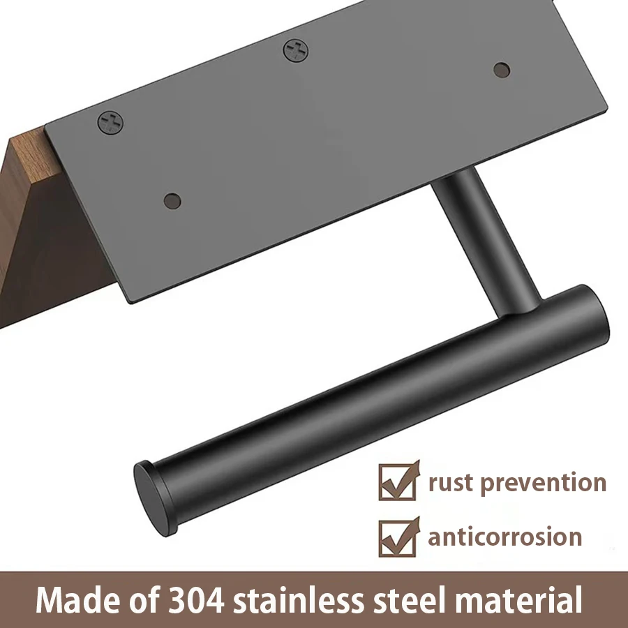 Soporte para pañuelos de hierro forjado montado en la pared con estante de almacenamiento de madera reciclada - organizador de baño que ahorra espacio