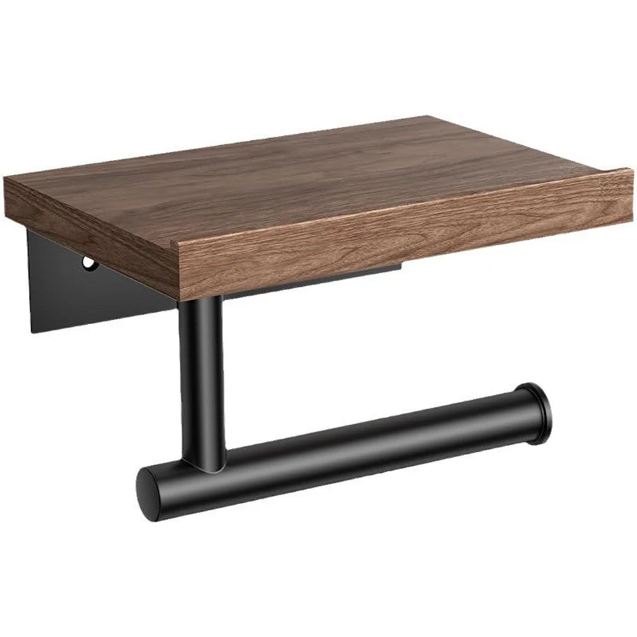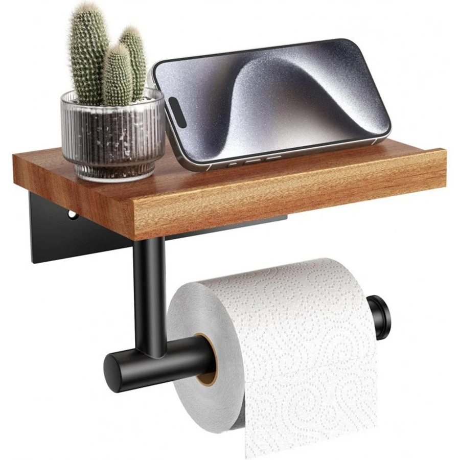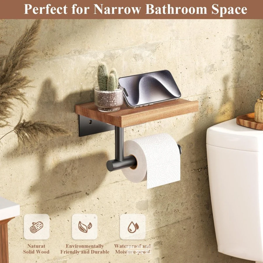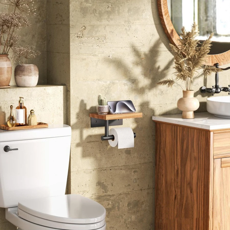 Soporte para pañuelos de hierro forjado montado en la pared con estante de almacenamiento de madera reciclada - organizador de baño que ahorra espacio