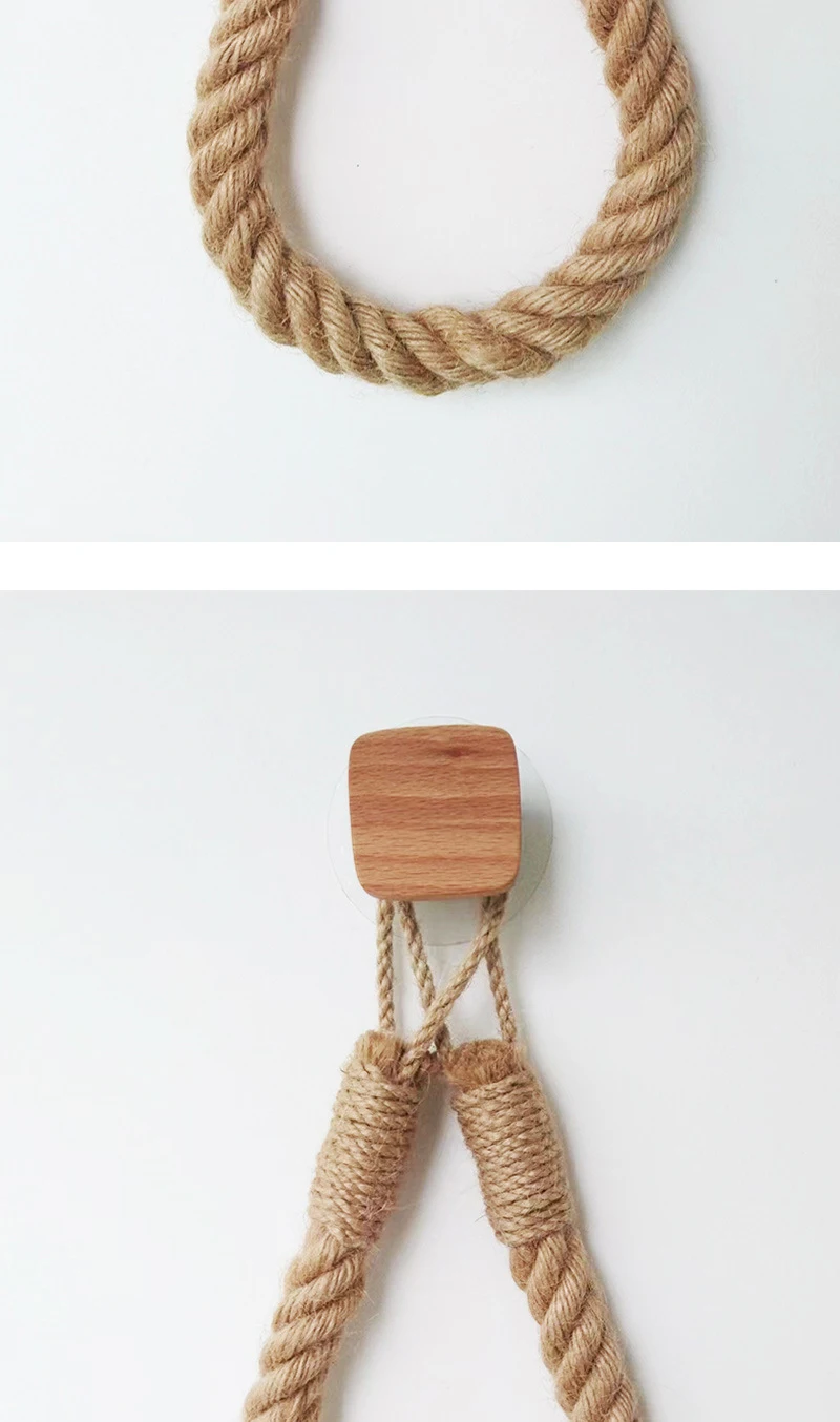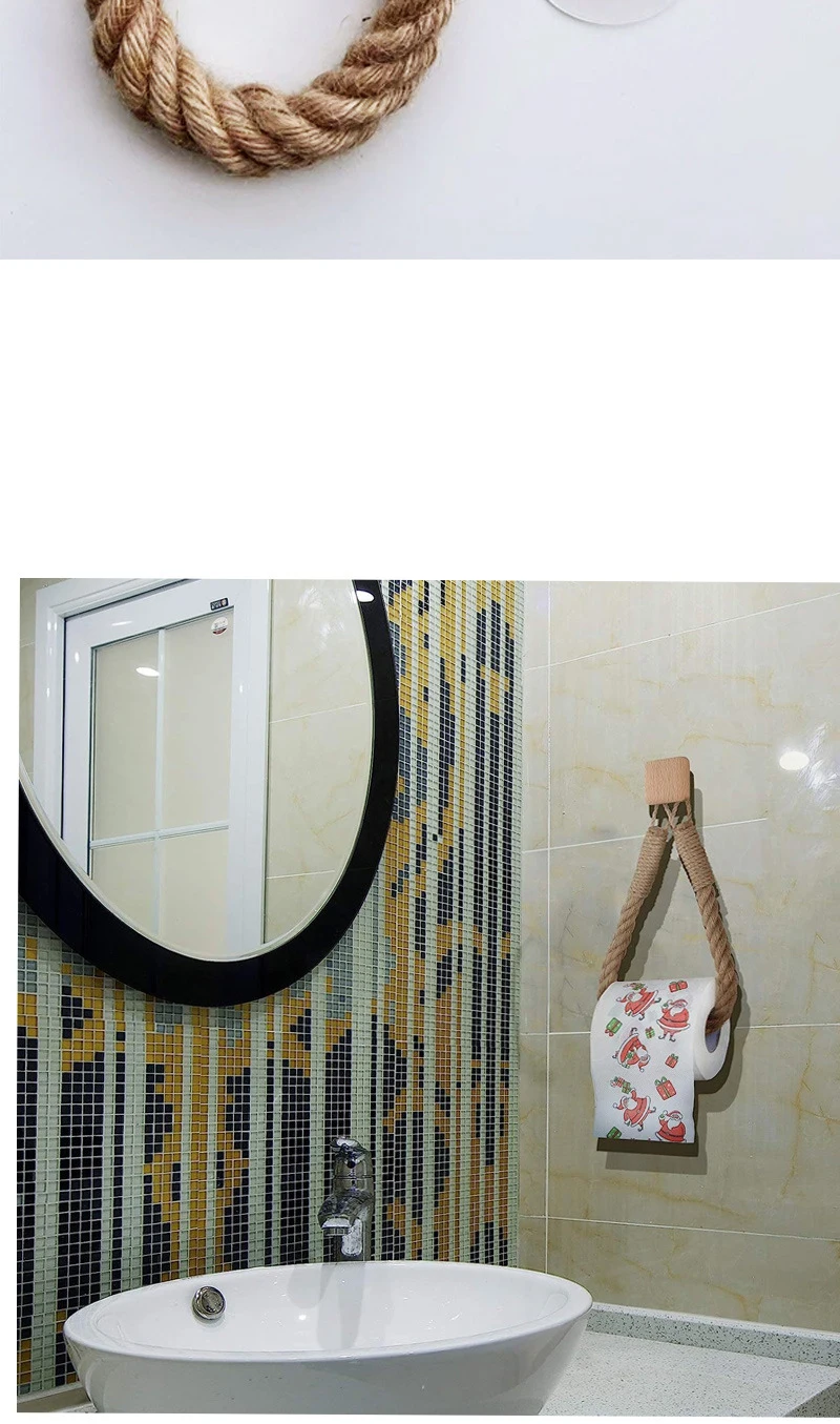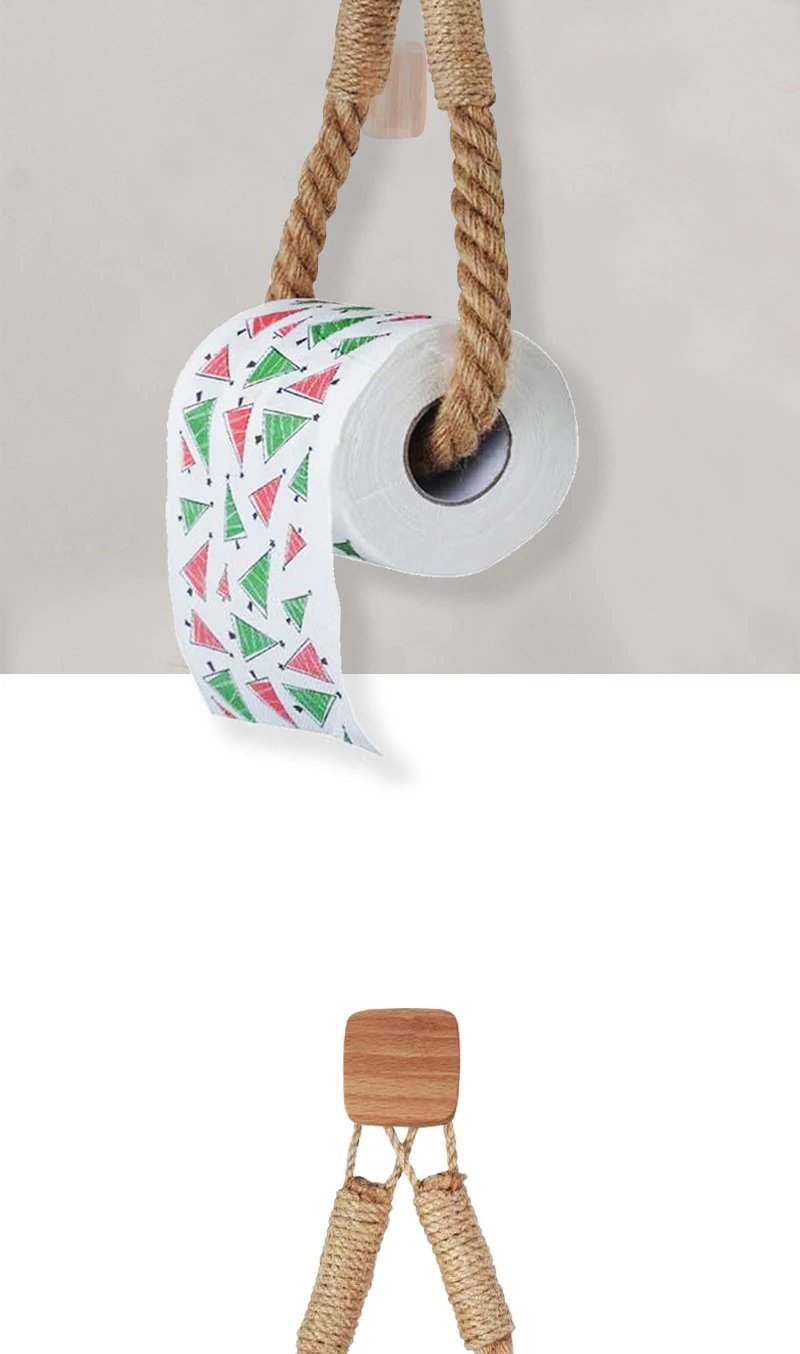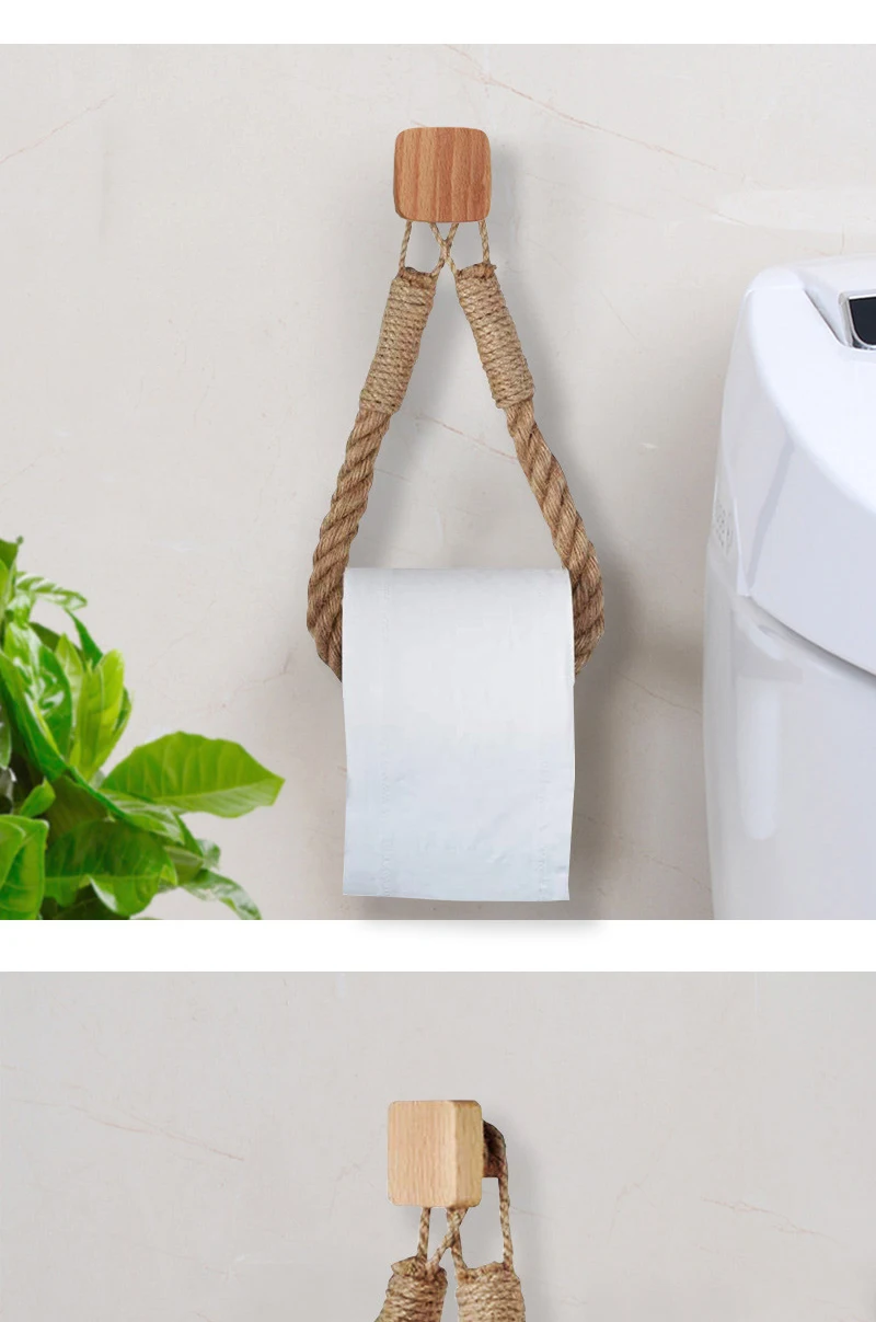 Soporte de papel higiénico de cuerda de cáñamo montado en la pared, accesorios de baño, soporte de pañuelos de papel rodante de madera, toallero de inodoro