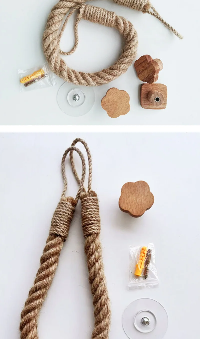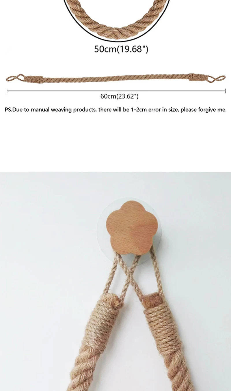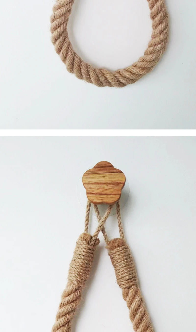 Soporte de papel higiénico de cuerda de cáñamo montado en la pared, accesorios de baño, soporte de pañuelos de papel rodante de madera, toallero de inodoro