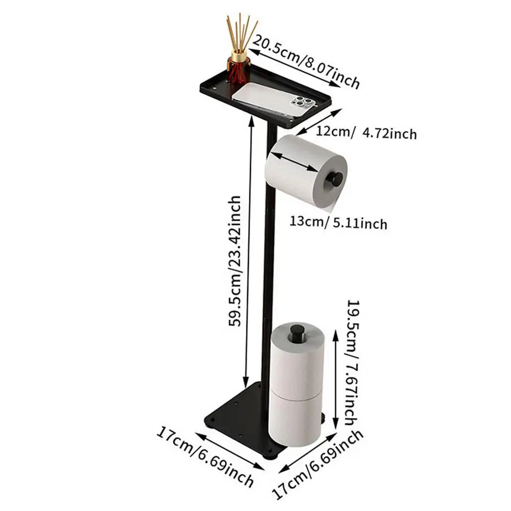 This Toilet Paper Holder Stand with storage rack is a versatile addition to any bathroom. It can be placed freely and is washable with water. The stand's design ensures it can meet your different needs while adding a touch of elegance to your bathroom decor.