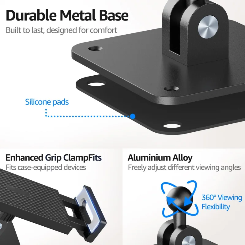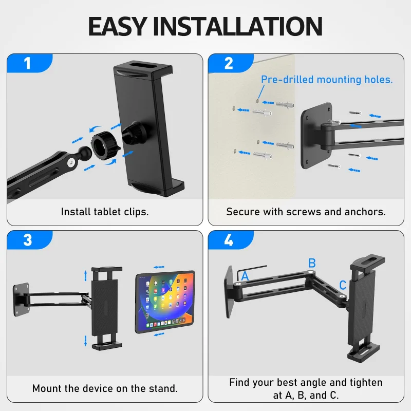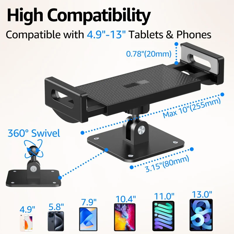 Soporte de pared para tableta, soporte para tableta con rotación de 360 grados, Base resistente, montado en la pared para cocina, Compatible con IPad/iPhone/todos 4-12,9 pulgadas