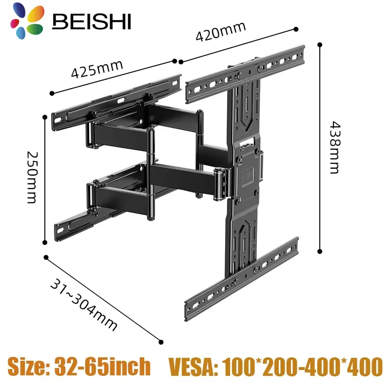 Soporte de pared para TV Full Motion para televisores planos/curvos de 32-65" - Brazo articulado telescópico con giro e inclinación, máximo VESA 400x400 mm