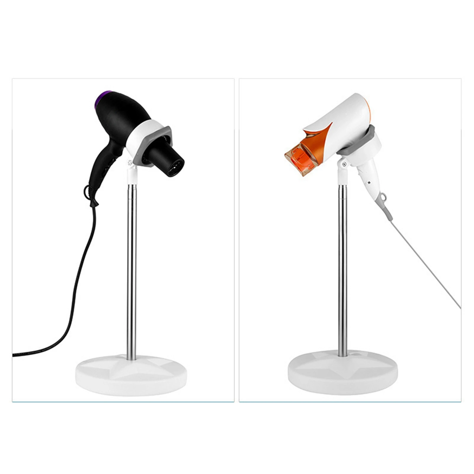 Altura ajustable: el soporte para secador de pelo está hecho de acero inoxidable y hierro, la altura se puede ajustar con una varilla telescópica, lo cual es conveniente para niños o mascotas.