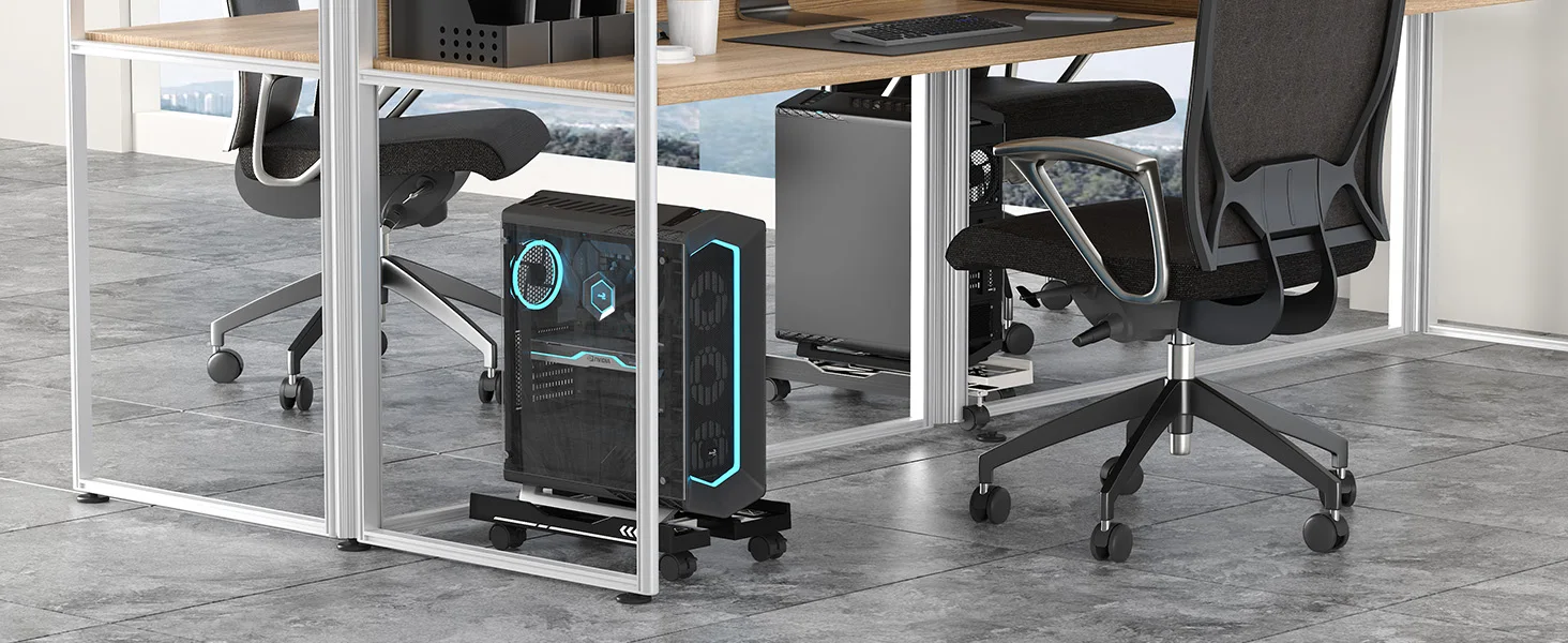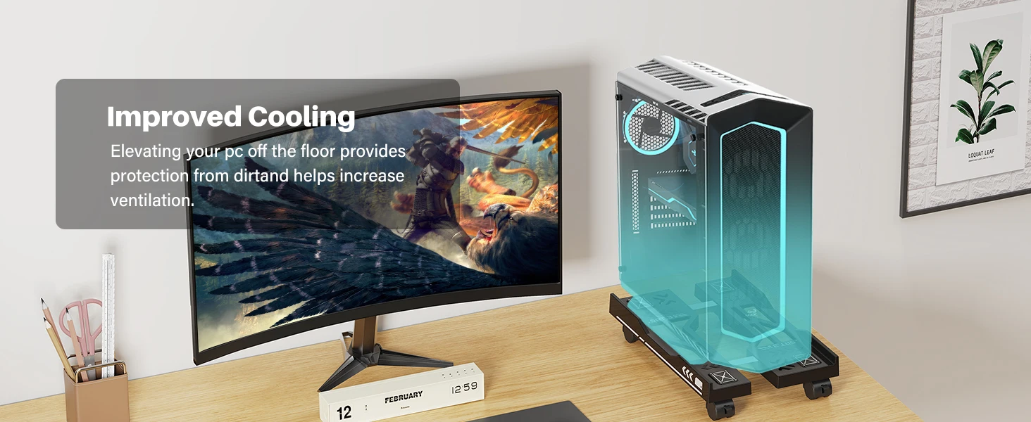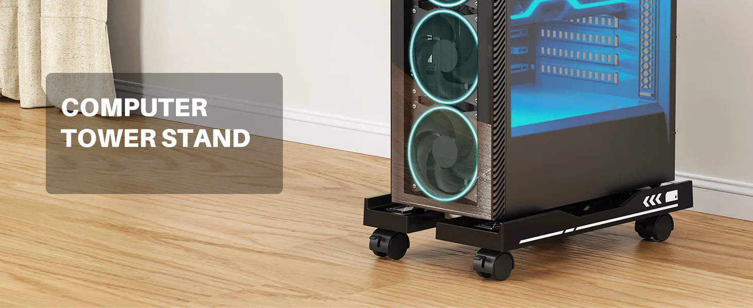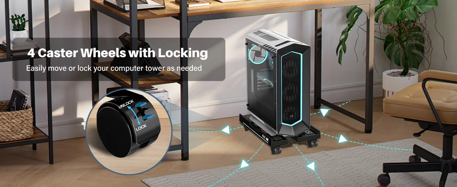 Ventilación y enfriamiento: soporte de torre para PC con ruedas y orificios en la parte inferior para mantener la torre alejada del suelo, mejora la refrigeración en la parte inferior y alrededor para mantenerla limpia y ventilada, protege en gran medida la torre de su computadora