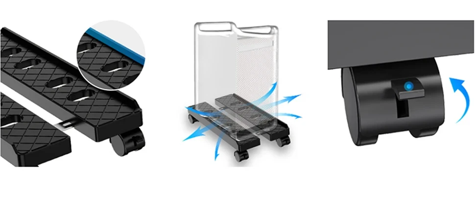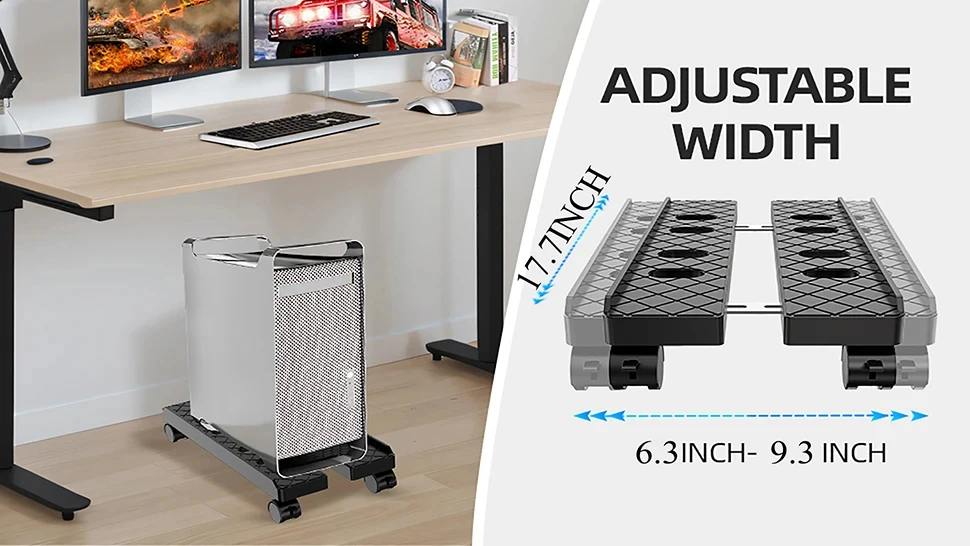 • Soporte de CPU debajo del escritorio: diseñado para caber debajo de la mayoría de los escritorios, este soporte de CPU proporciona una solución ordenada y ordenada para sus necesidades informáticas.