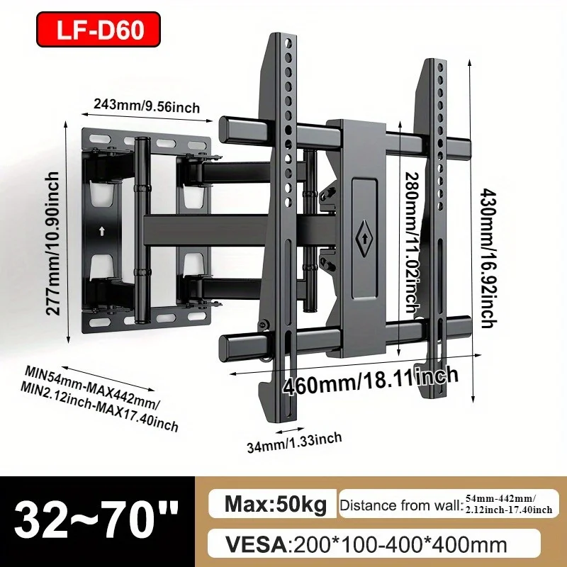 Soporte de TV ajustable montado en la pared telescópico plegable Universal fijo 32-70/80 pulgadas marco de TV estiramiento inclinable VESA 600*400mm máx. 50kg