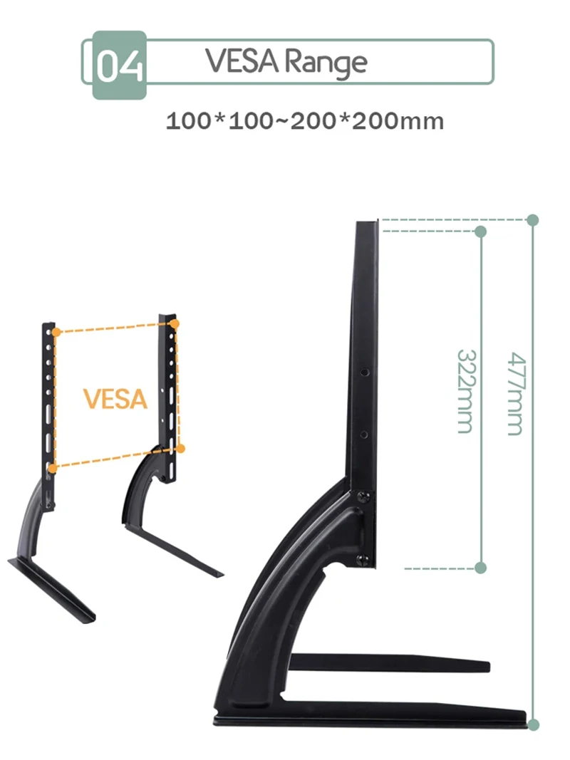 *Estructura duradera y estabilidad:El diseño ajustable en altura, resistente y elegante satisface sus necesidades de un soporte de TV de escritorio funcional.