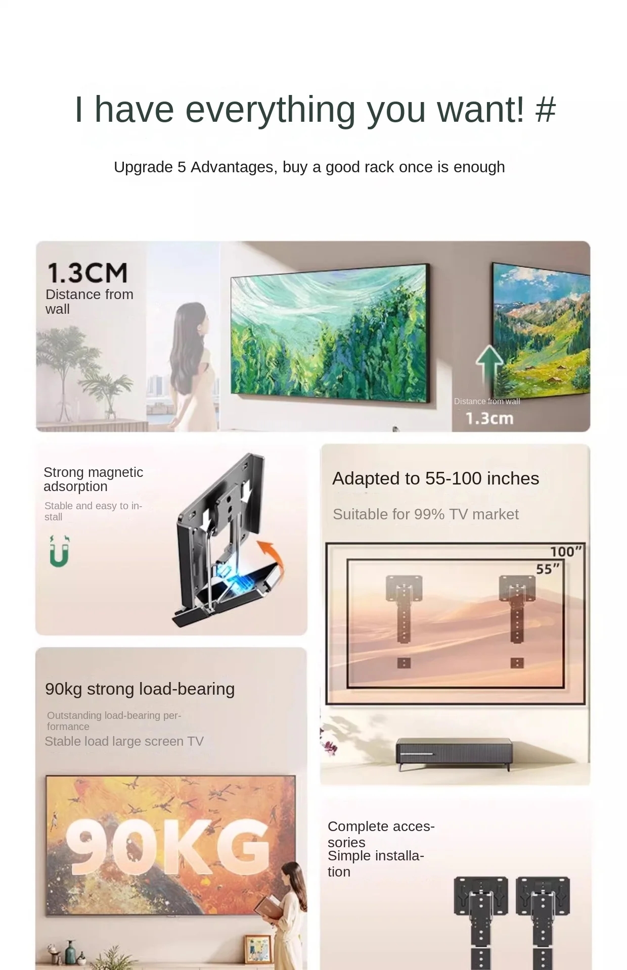 Soporte de TV para TV LCD de 40-100 pulgadas, soporte de montaje en pared para TV, soporte sólido de carga grande, soporte de pared para TV