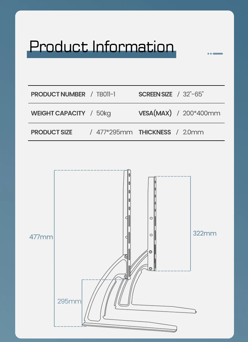 Compatibilidad con tamaños de televisores: TB011caporta televisores de 32" - 75" y pesa hasta 50 kg
