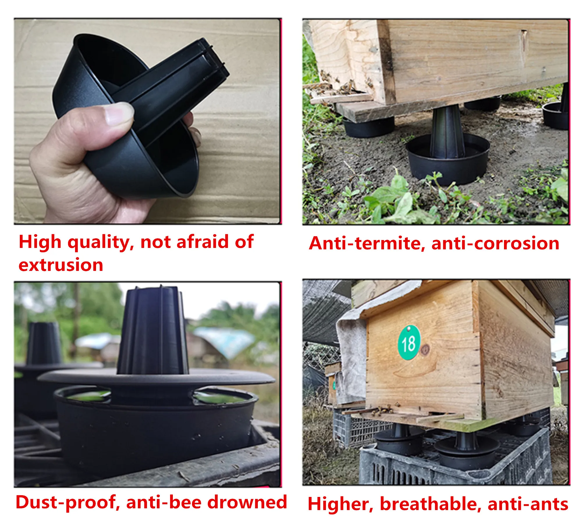 Descripción del producto¡100% nuevo!Coloque 4 pedestales de fregadero a prueba de hormigas en la parte inferior de la colmena para evitar que entren a las colmena.Coloque cualquier tipo de aceite o líquido en el recipiente inferior y mantenga la cubierta superior a 5 mm por encima del recipiente inferior.Fácil de montar y dura mucho tiempo.¡Resuelve los problemas de los apicultores!Nombre: Pedestal de fregadero a prueba de hormigas de colmenaMaterial: plástico de alta calidadColor negroTamaño: aproximadamente 9 x 9 x 9 cm (largo x ancho x alto)Características: Alta calidad, sin miedo a la extrusión, Antitermite, anticorrosión, A prueba de polvo, Anti-abejas ahogado, Mayor, transpirable, Anti-pantalonesEl paquete incluye:(5 - Tipo para elegir)4 piezas/8 piezas/12 piezas/16 piezas/20 piezasx Pedestal de fregadero a prueba de hormigas de colmenaNotas:Permita errores de 1-2 mm debido a la medición manual.El color del artículo que se muestra en las fotos puede verse ligeramente diferente en el monitor de su computadora, ya que los monitores no están calibrados del mismo modo.