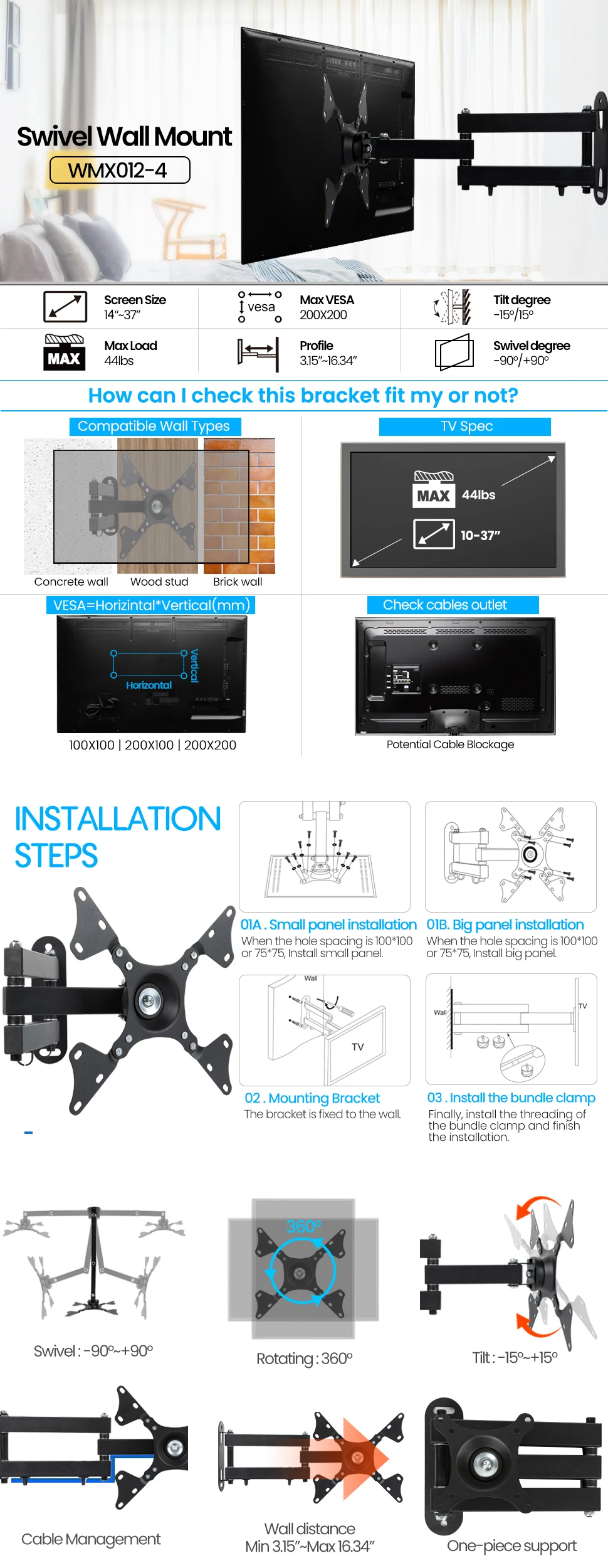 - El bastidor para TV tiene un amplio rango de pasos de instalación de 75*75, 100*100.La parte extendida se puede utilizar libremente.
