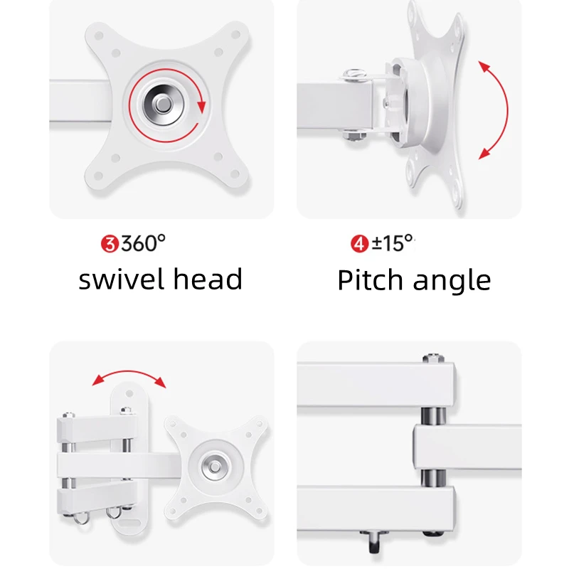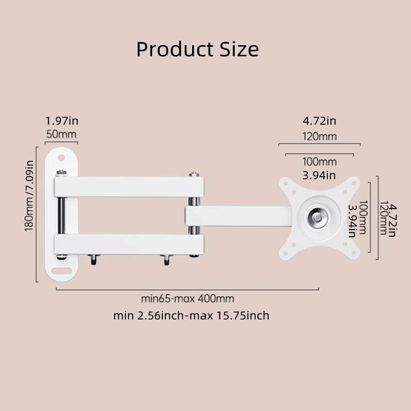 - El soporte telescópico es un soporte para TV multifuncional.Este producto se puede girar 180 grados hacia la izquierda y hacia la derecha, hacia abajo 5 grados y la distancia telescópica es de 70 mm a 400 mm.