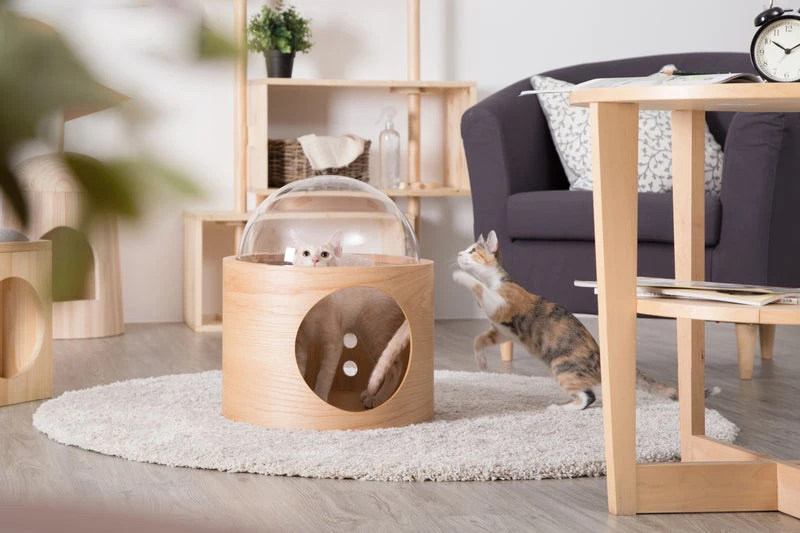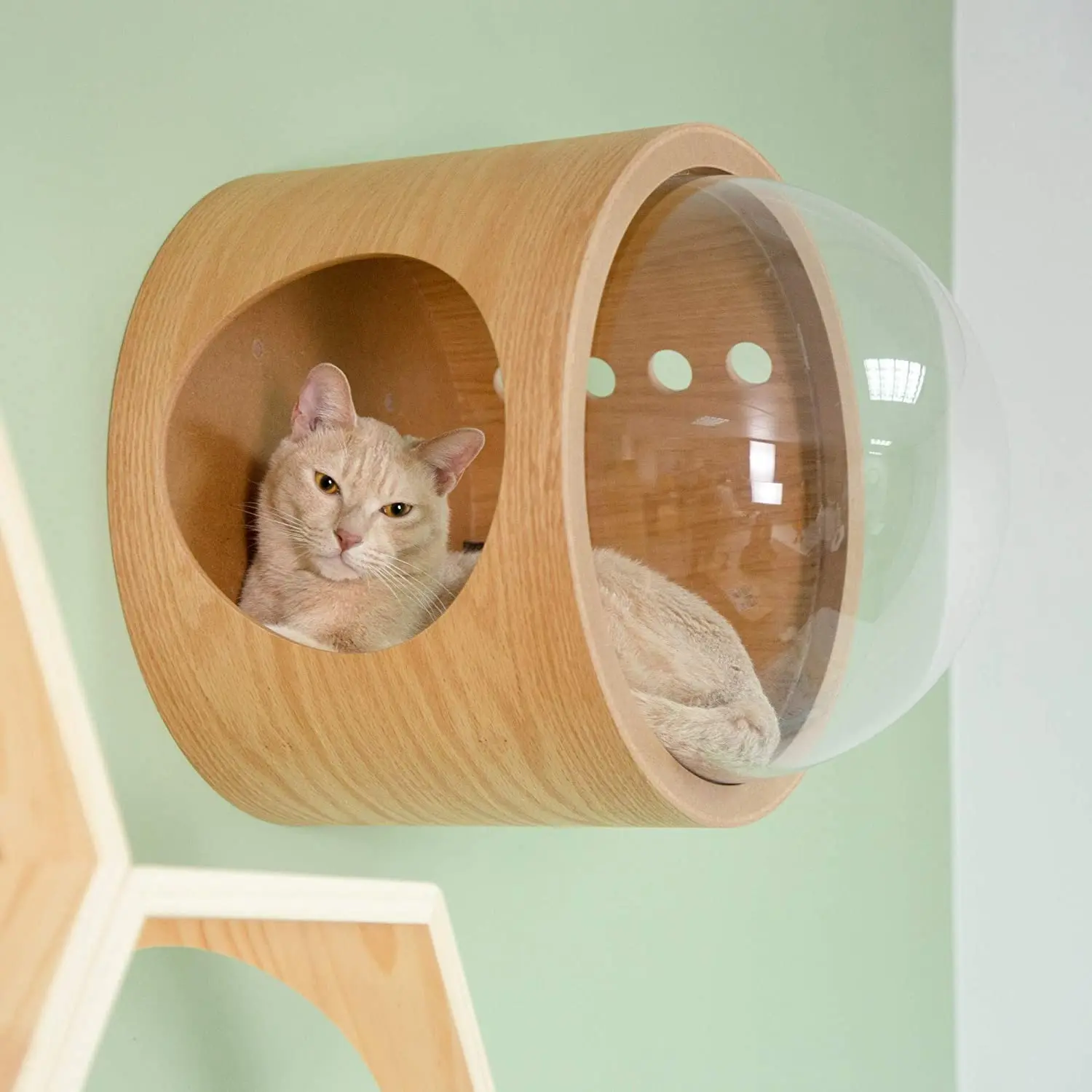 Nombre del productoNave espacial Gamma cama para mascotas para gato y perro ventana percha gato árbol hecho de madera cama para gato montada en la pared