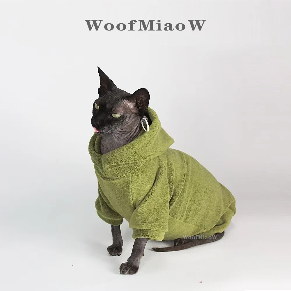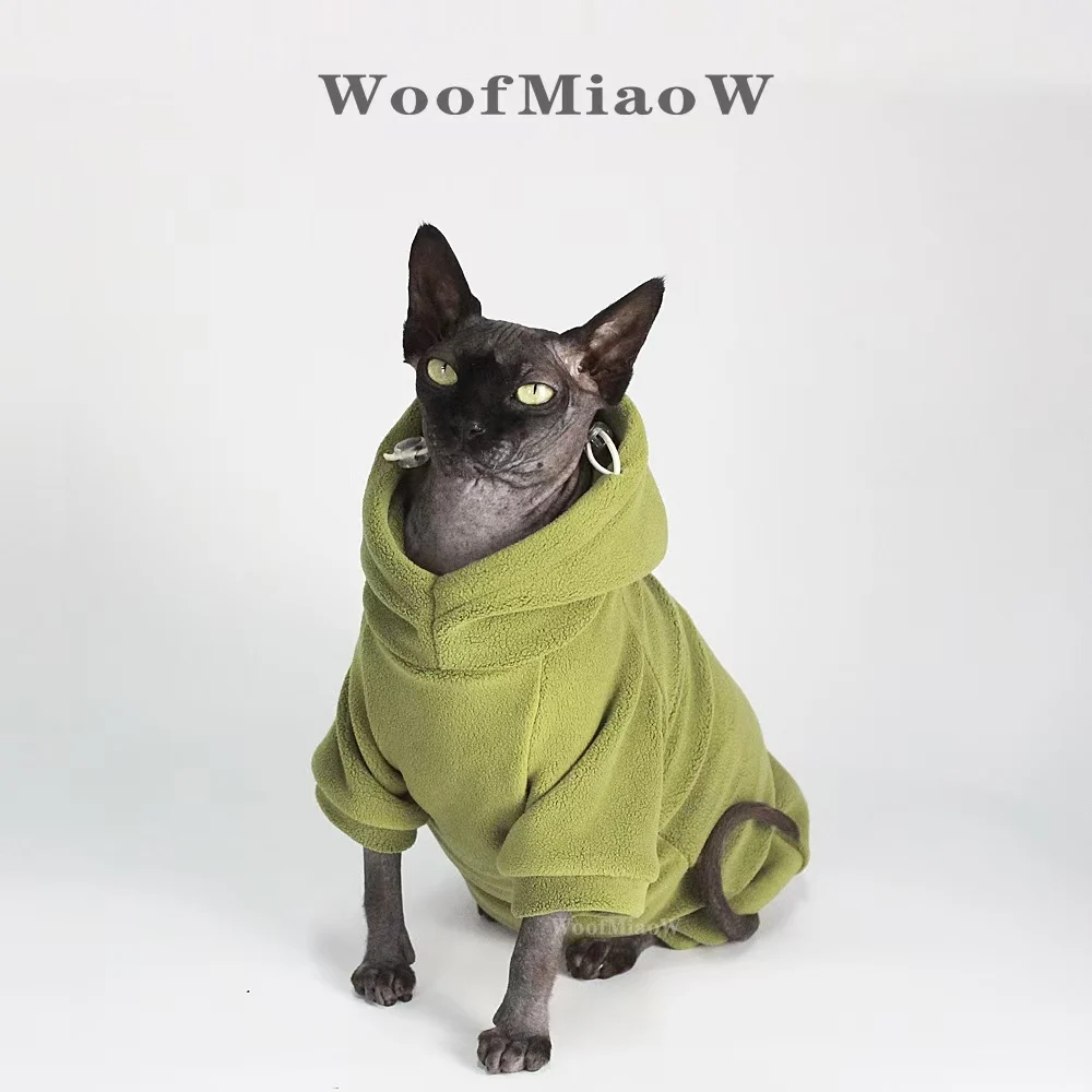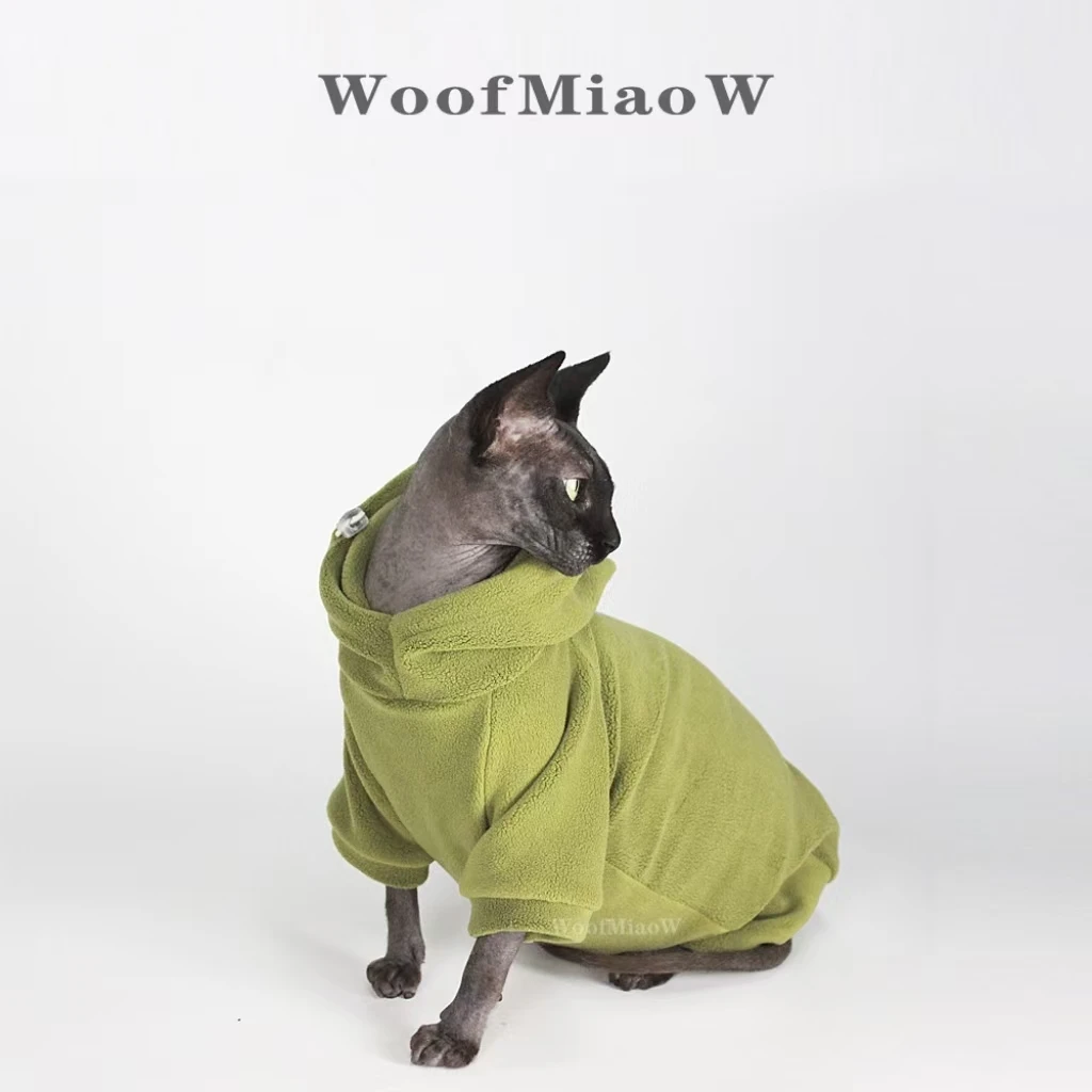 Sphinx gato ropa de otoño e invierno protección gruesa del vientre con capucha ropa de cuatro patas gato color sólido cómoda Sudadera con capucha