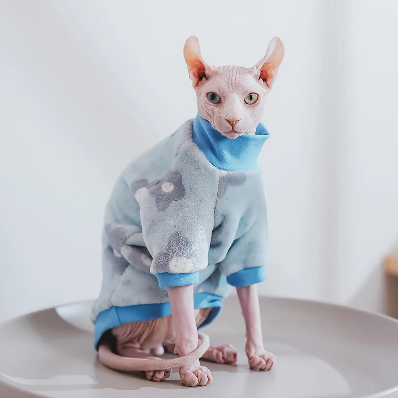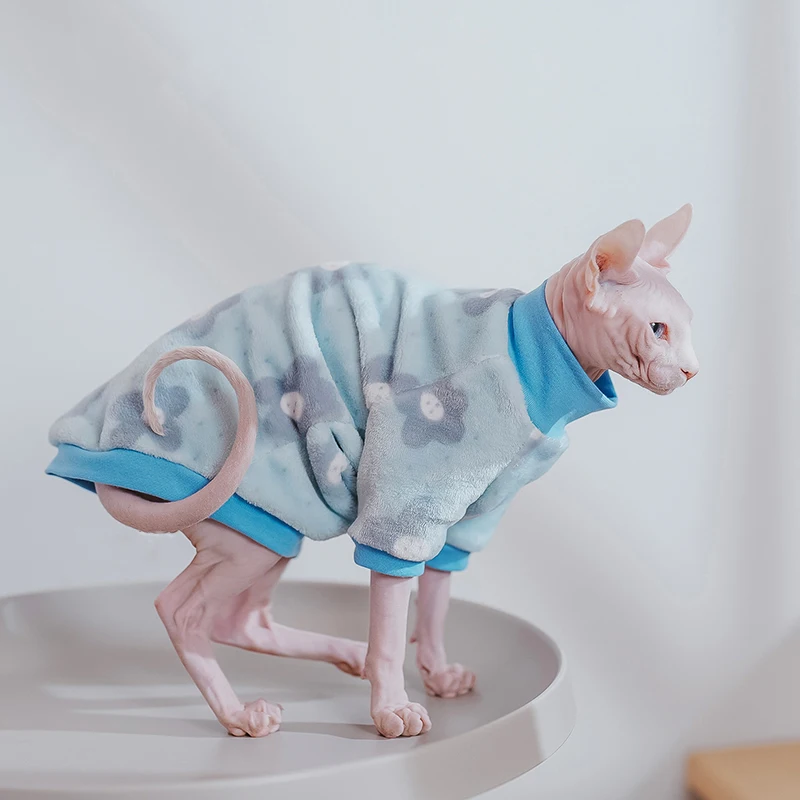 Ropa de gato Sphynx, sudaderas con capucha cálidas de invierno para gatos, bonitos pijamas florales de franela suave para gatos, Disfraces para gatos Sphinx Devon Rex