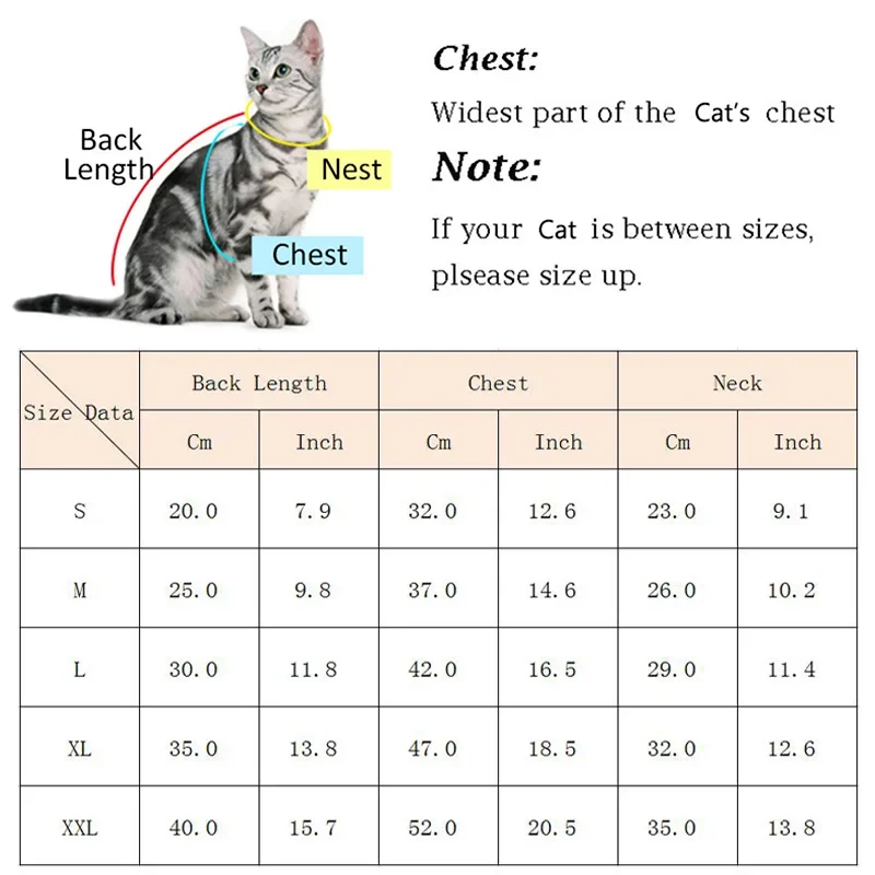 1. Compruebe su mascota para asegurarse de que las medidas de la ropa se ajusta a las mascotas antes de realizar el pedido (1 pulgada=2,54 cm)