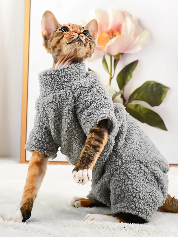 Ropa para gatos Sphynx, mono cálido de invierno para gatos, sudaderas con capucha, suave, polar, para gatos, gatitos, pijamas, Disfraces para gatos eshinx