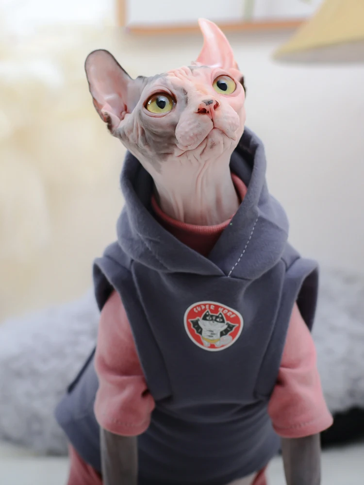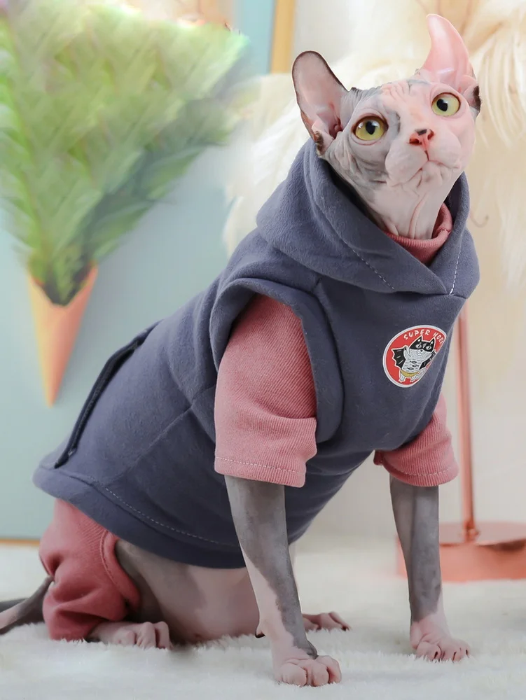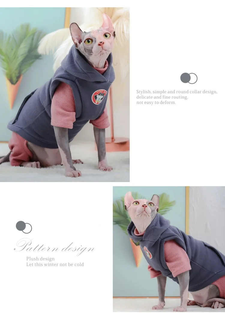 Ropa para gatos, sudaderas con capucha cálidas de algodón para gatos Sphynx, sudadera polar, chaleco para gatos, pijamas para gatitos, ropa, suministros para gatos* Tipo: Sudadera con capucha para mascotas + conjunto de chaleco* Material: algodón* Característica: suave, cómodo, agradable a la piel* Apto para: gatos pequeños y medianos, por ejemplo, Ragdoll,Felinae,Sphynx,etc.* Paquete: 1 Sudadera con capucha de gato o 1 Chaleco de gato