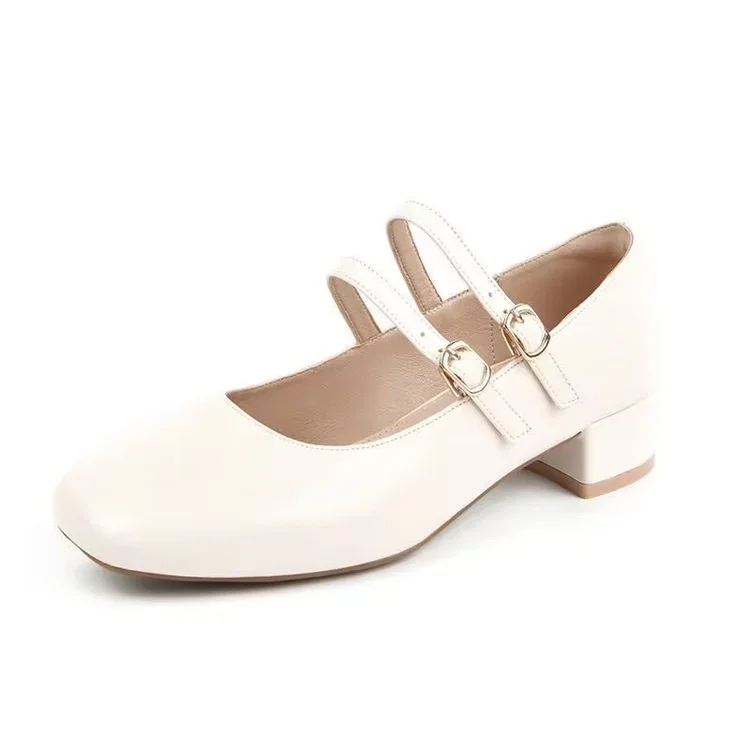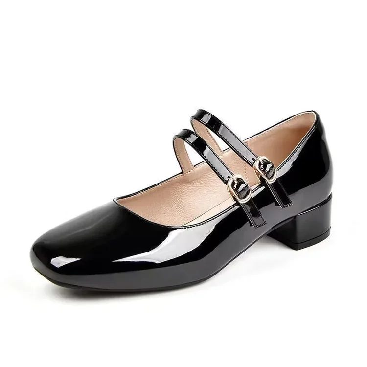 Spring Autumn Women DoubleBuckle Mary Janes Shoes Patent LeatherDress Square Head Square Heel Solid ColorWomen's Shoes