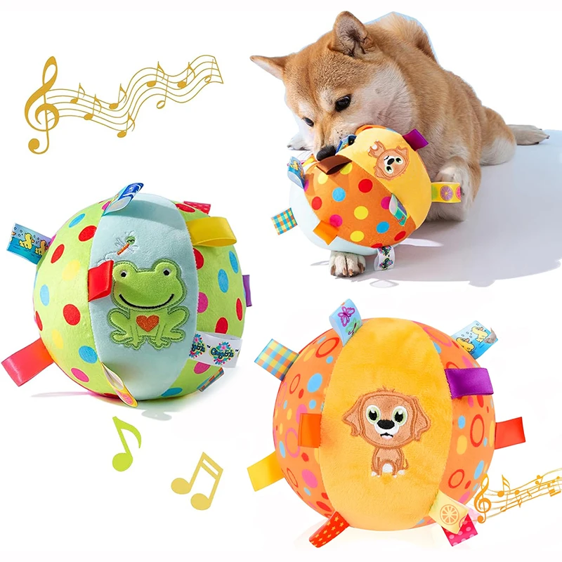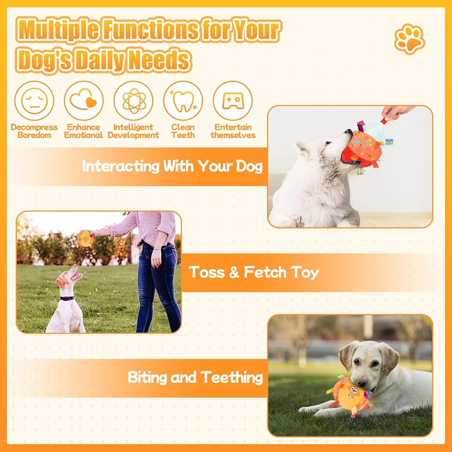 Squeaker-pelota de peluche para perro, juguete de masticar relleno de algodón suave de 6 pulgadas, entrenamiento, descompresión, juguetes interactivos para perros de todos los tamaños