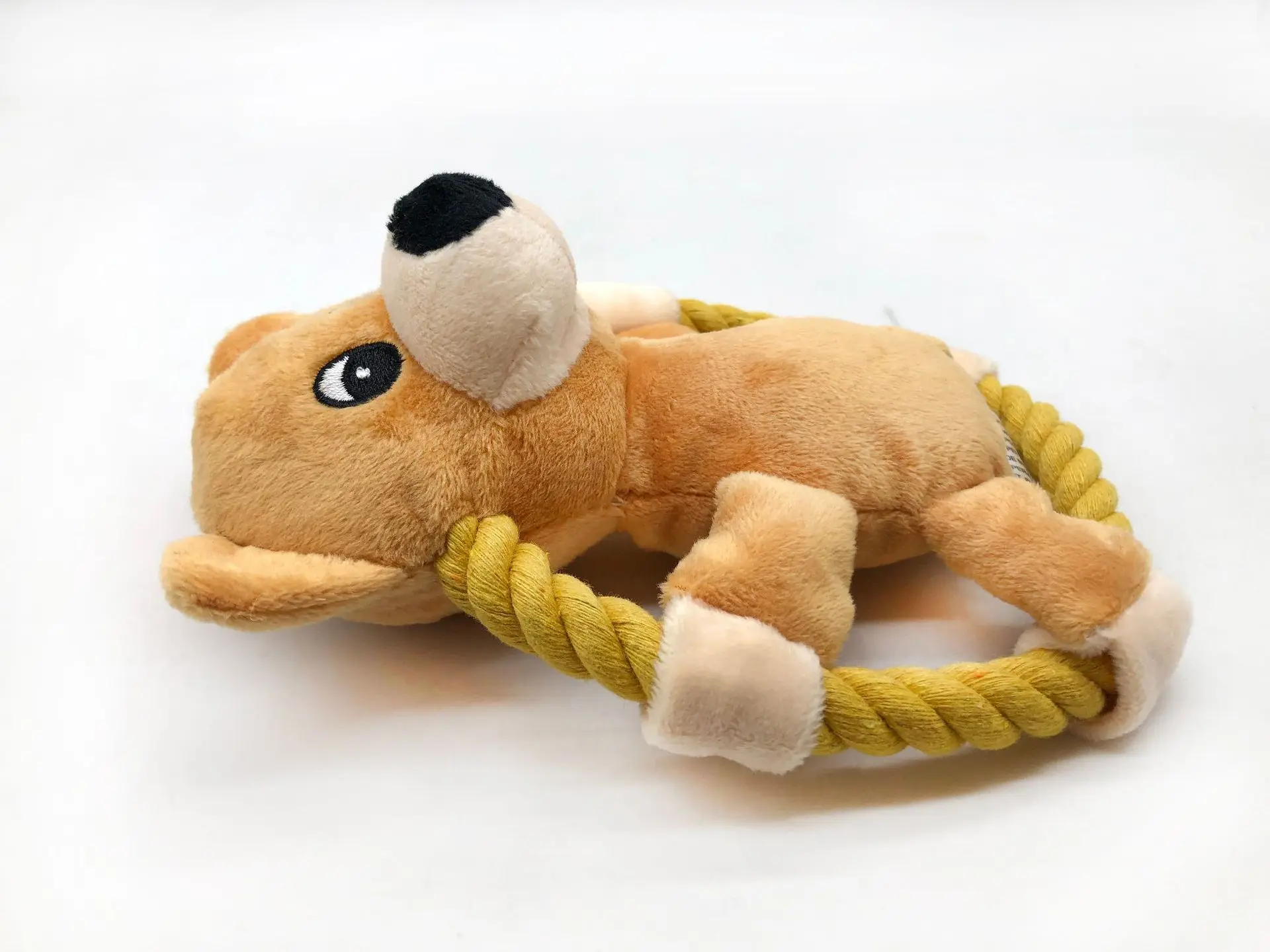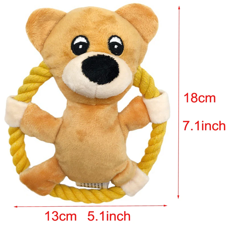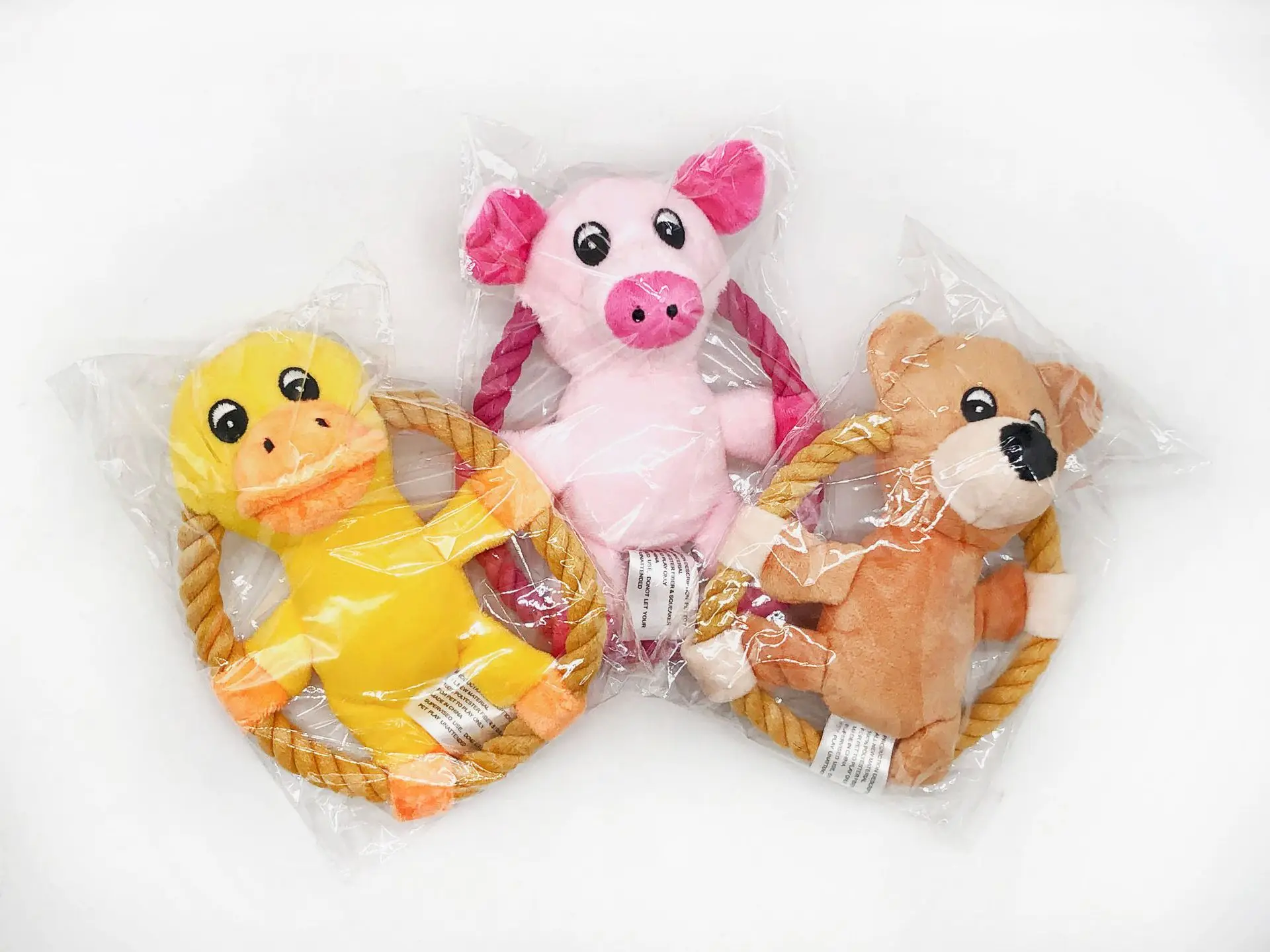Squeaky Dog Toys for Small Medium Dogs, Pig Duck Bear Shape Puppy Teething Toy with Cotton Rope Animals Plush Interactive Toy