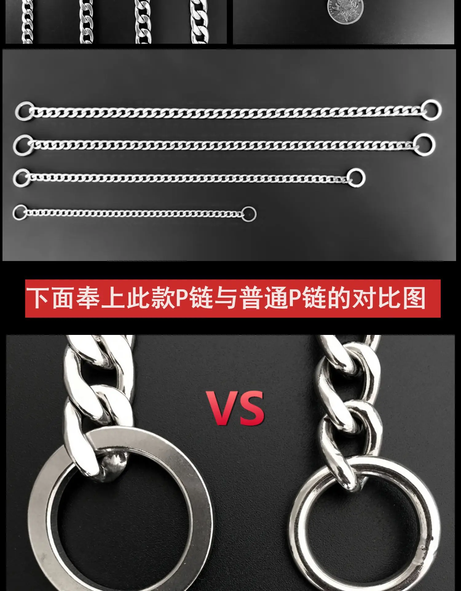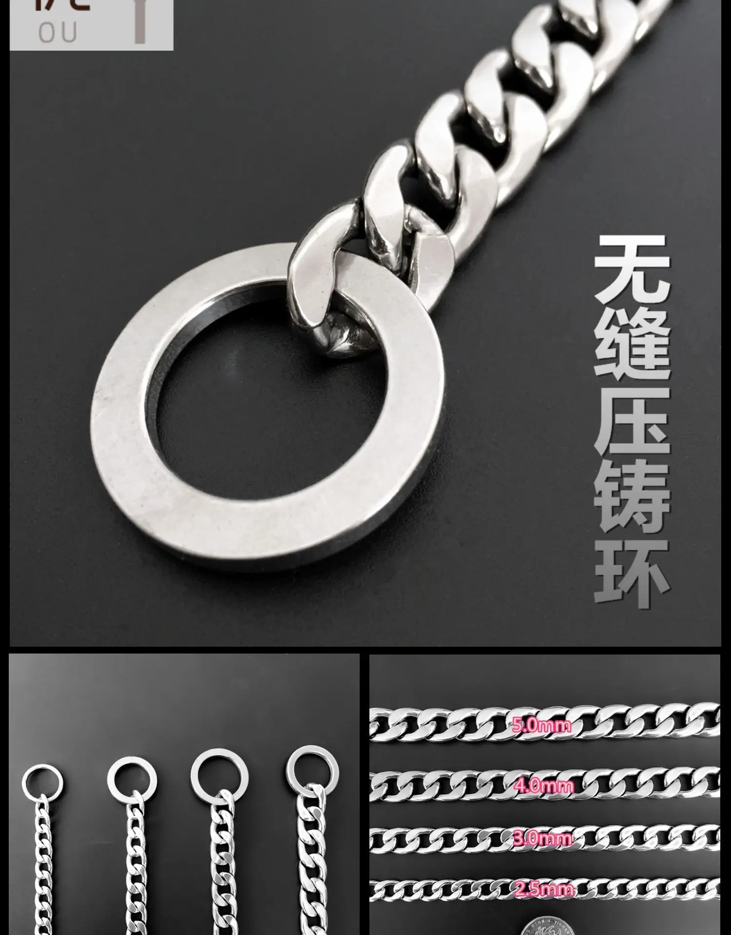 Stainless Steel P Chain Collars Flat Welded Polished Non-clipped Dog Training Collar Pet Products Dog Supplies