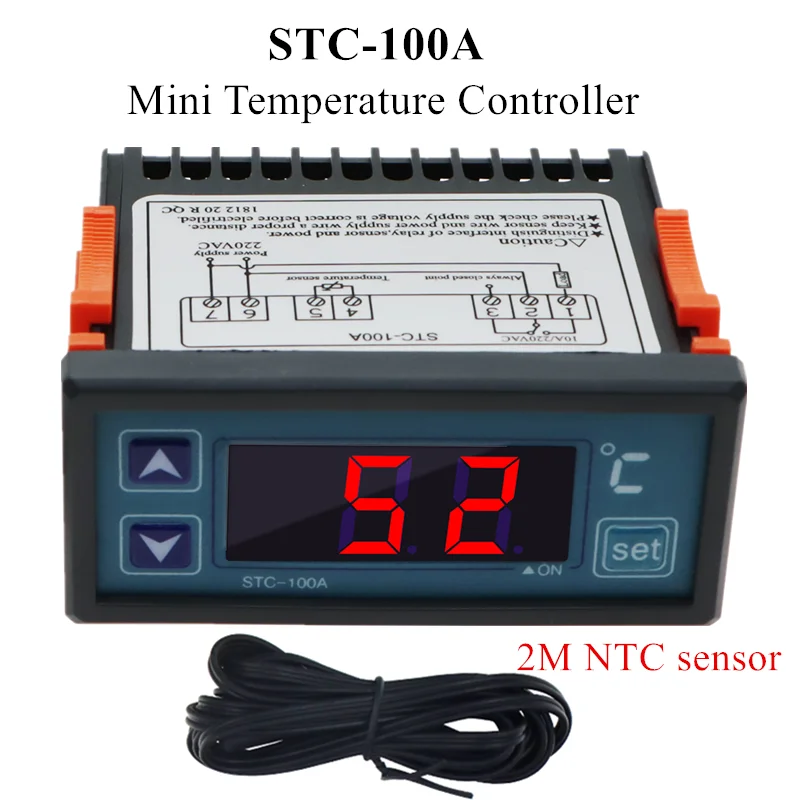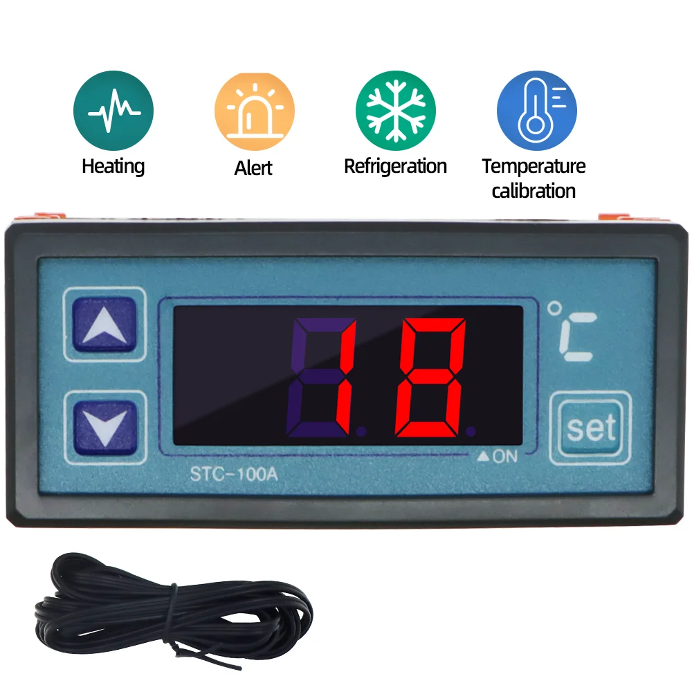 Mini controlador de temperatura STC-100A, termostato Digital de 220V, refrigeración, calefacción, refrigerador, termorregulador, Sensor NTC de 2M