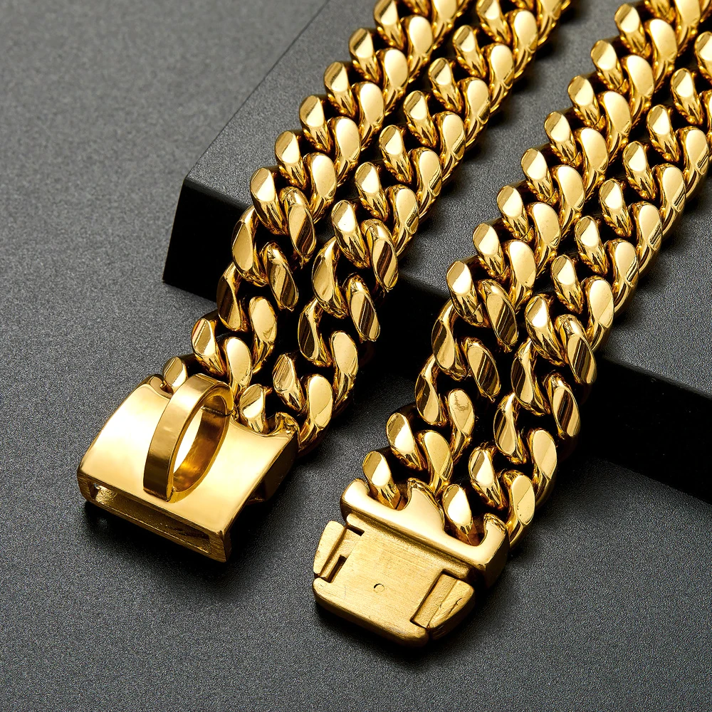 Tipo: Collar de cadena fuerte para perros, collares de entrenamiento para mascotas de acero inoxidable dorado, Collar de Metal para perros geniales para perros medianos y grandes Pitbull Bulldog