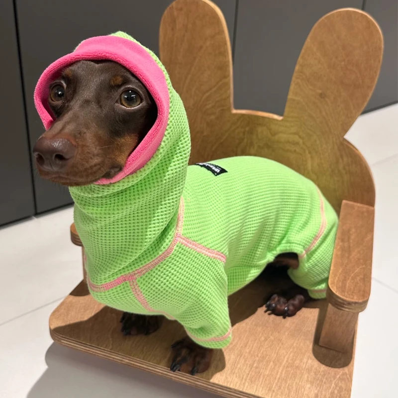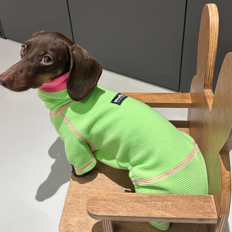 Sudadera de 4 patas de moda para Meida Big Wiener pequeño en otoño abrigo transpirable para perros Dachshund mono suave para perro de tejón