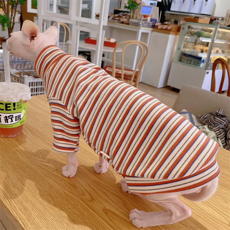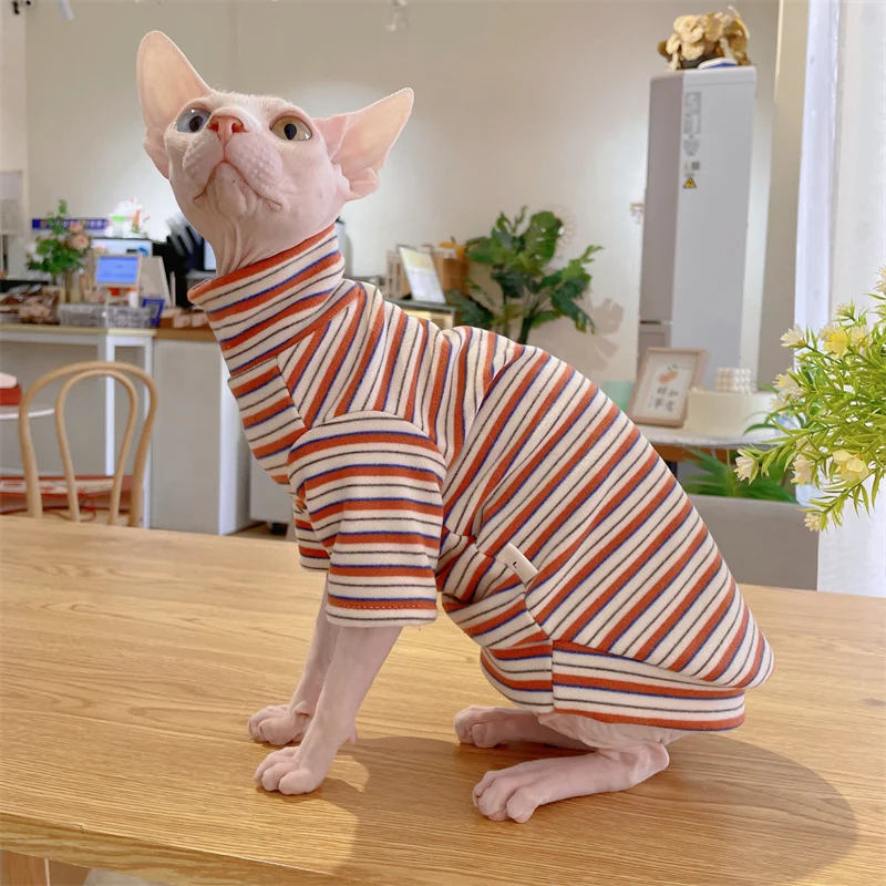 2. Diseño de moda: suéter de cuello alto a rayas, para mascotas.