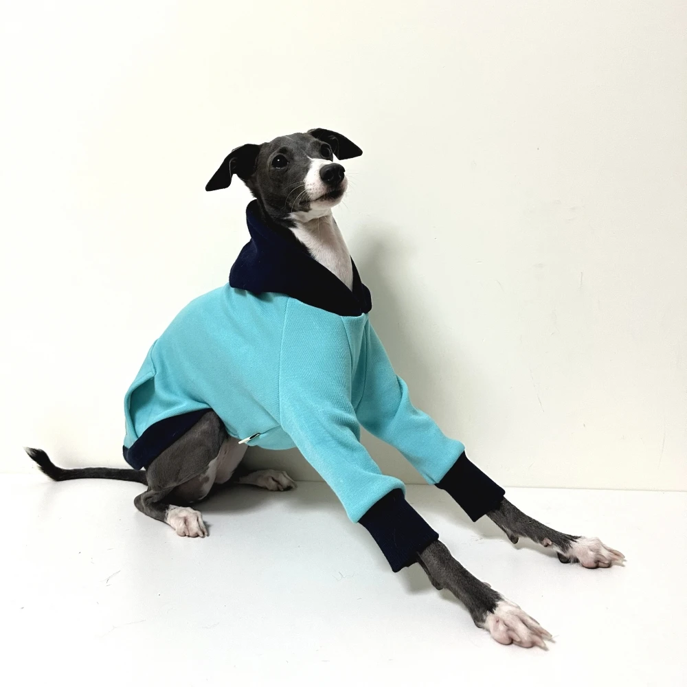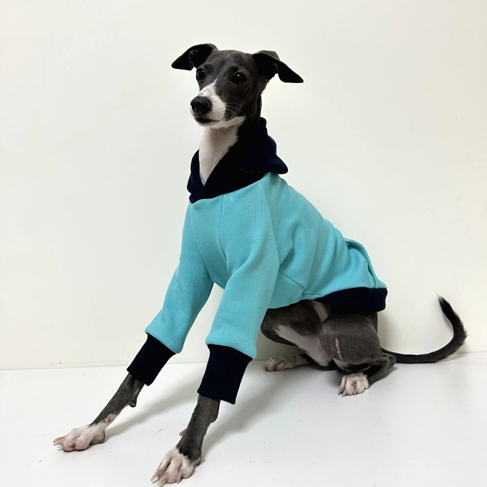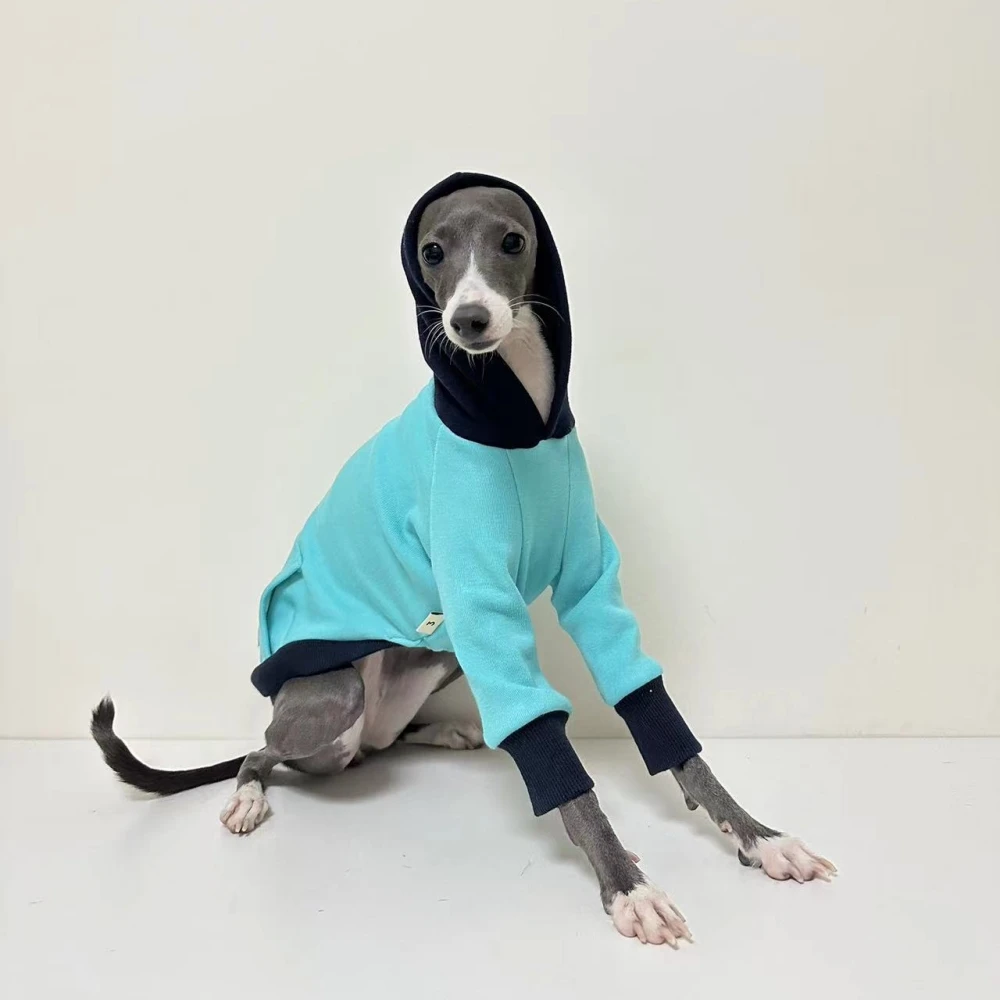 Sudadera azul para perro Huibit, abrigo cálido de terciopelo con capucha para invierno, pijamas de moda Bedlington Little Greyhound en prendas de vestir de otoño