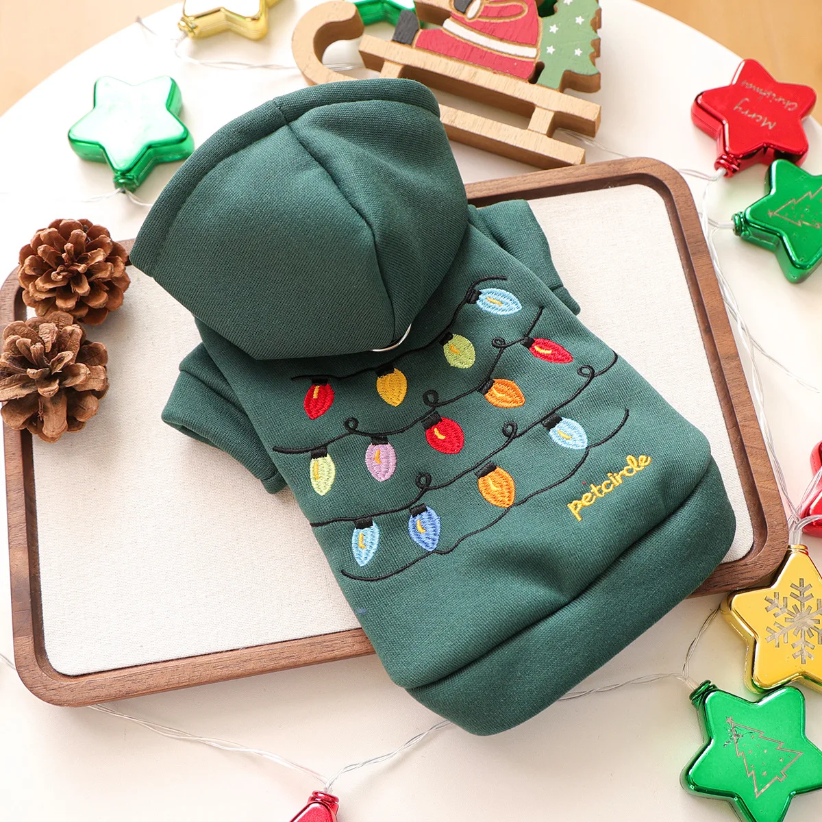 Sudadera con capucha bordada para otoño e invierno, lindo gatito festivo, sudadera navideña colorida informal, ropa para cachorros