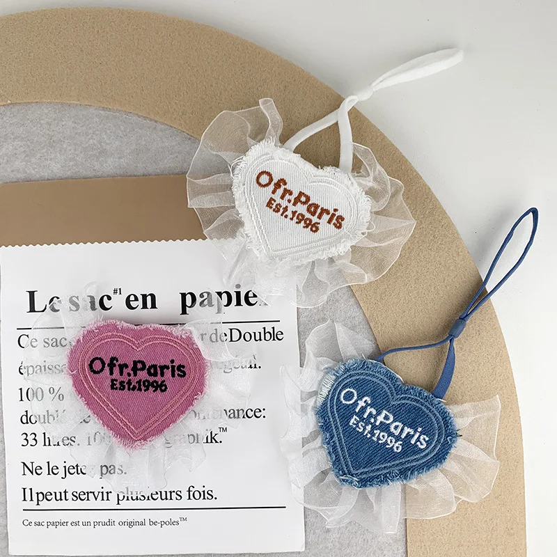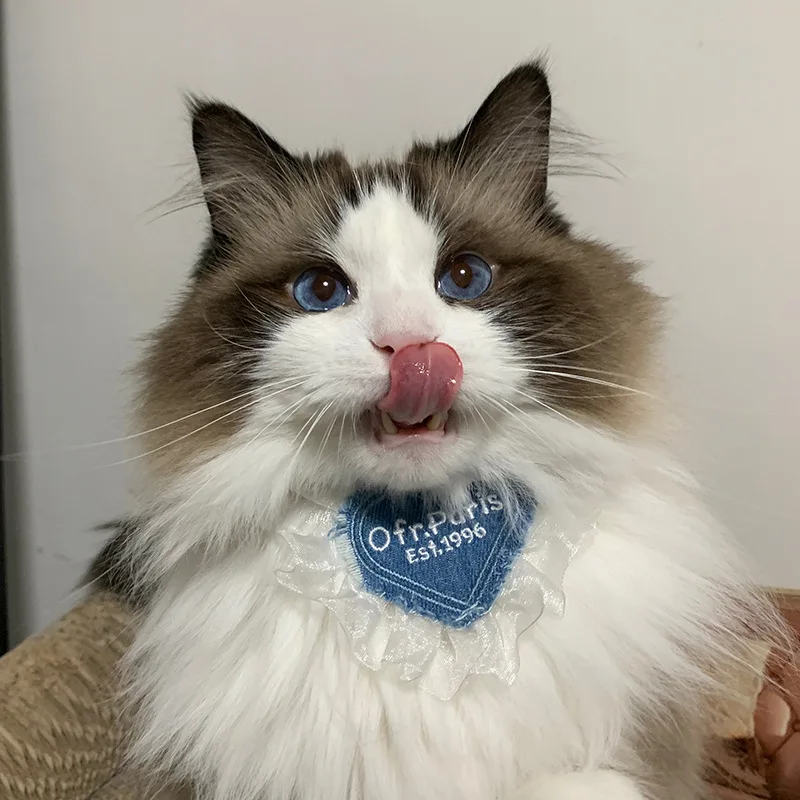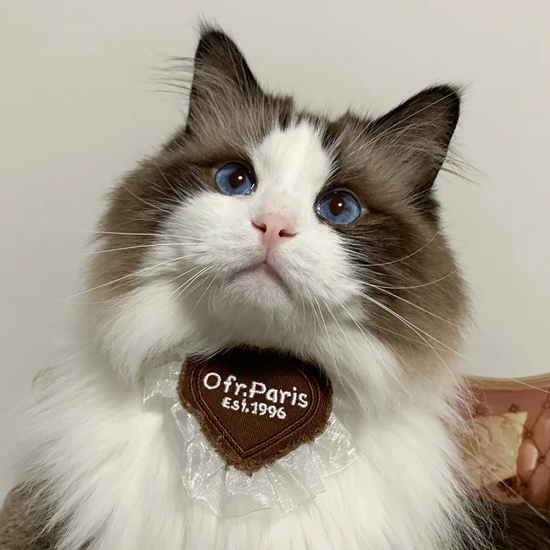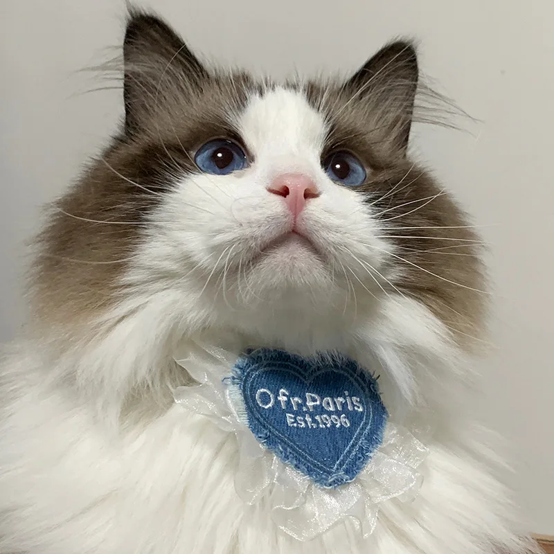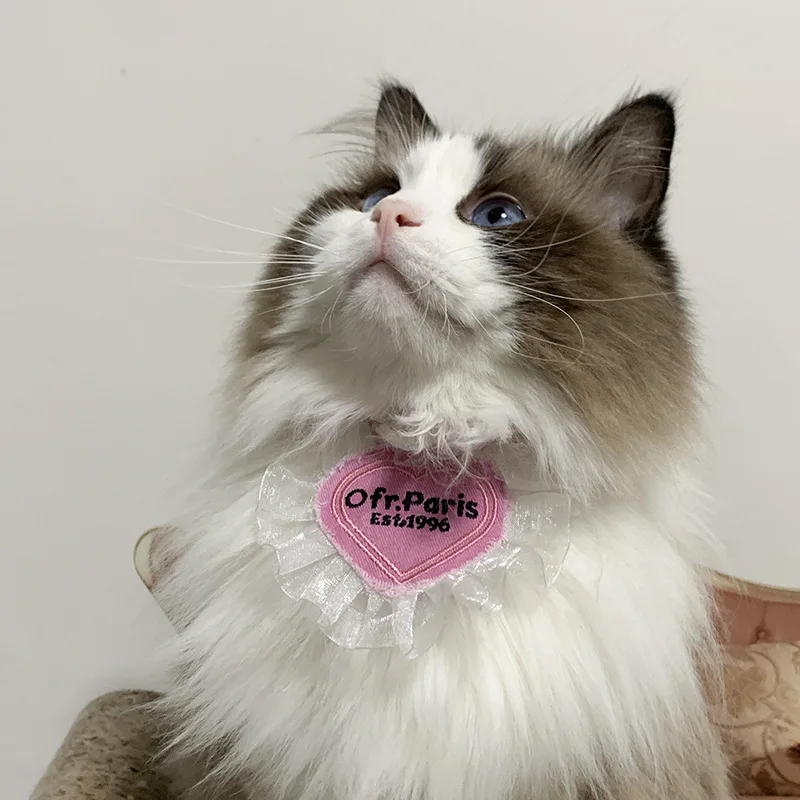 Sudadera con capucha con bordado de amor de vaquero para mascotas, bufanda de agua con cuello de gato, Collar de corazón para perros pequeños, accesorios para fotos INS