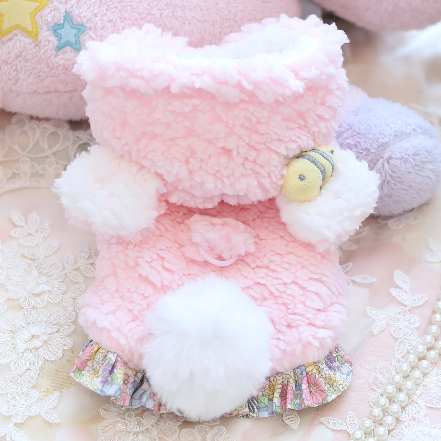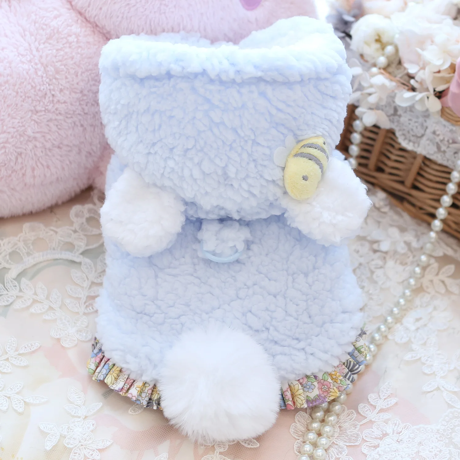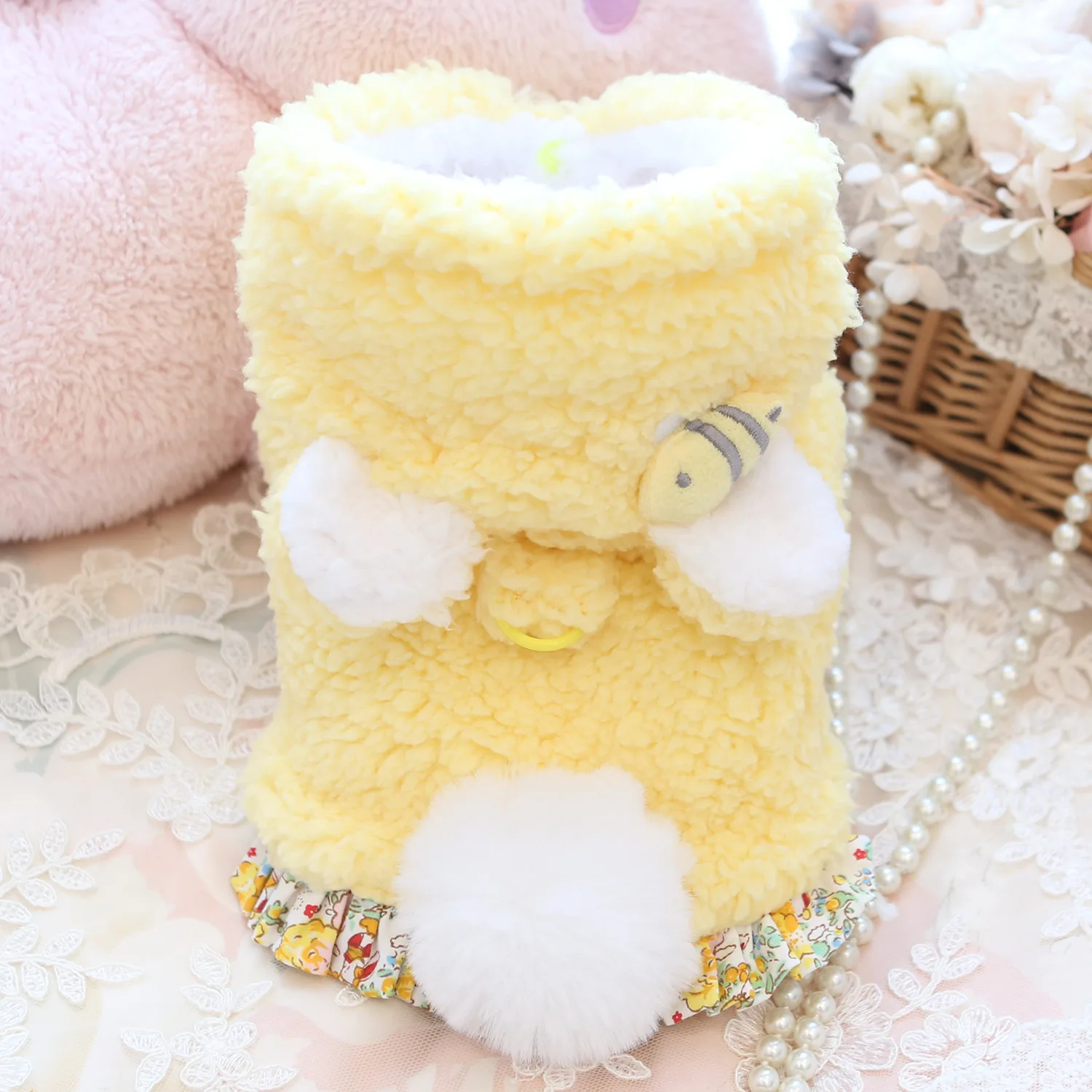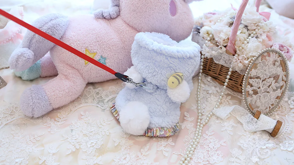Sudadera con capucha con borde de flores de terciopelo para mascotas, vestido de terciopelo para invierno, ropa para cachorros, ropa para perros pequeños, chaqueta para mascotas