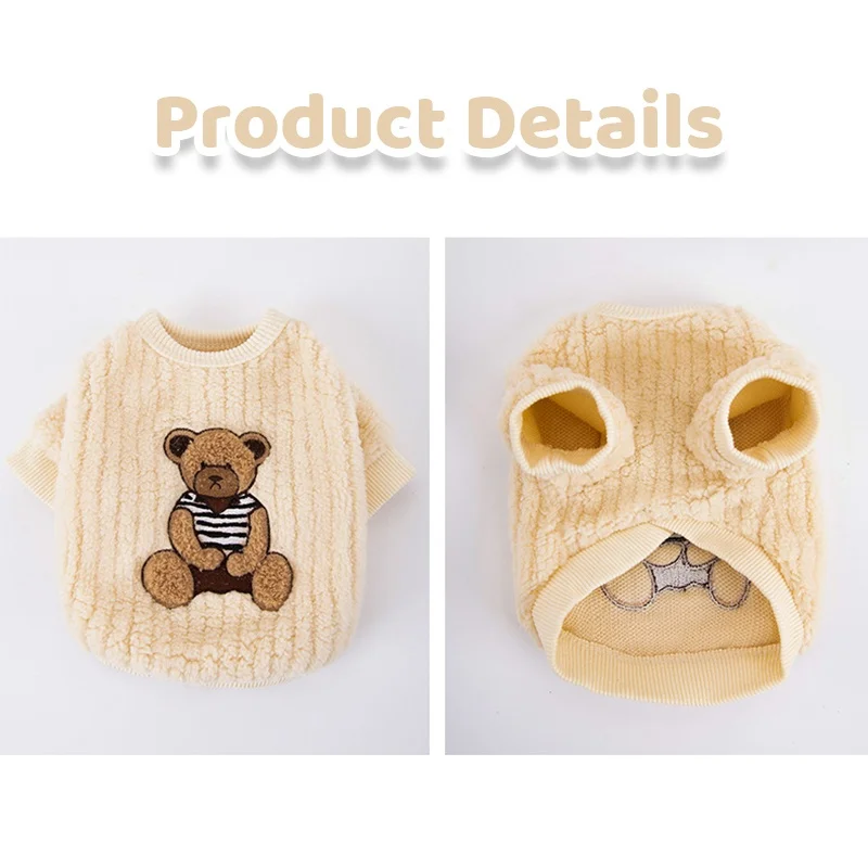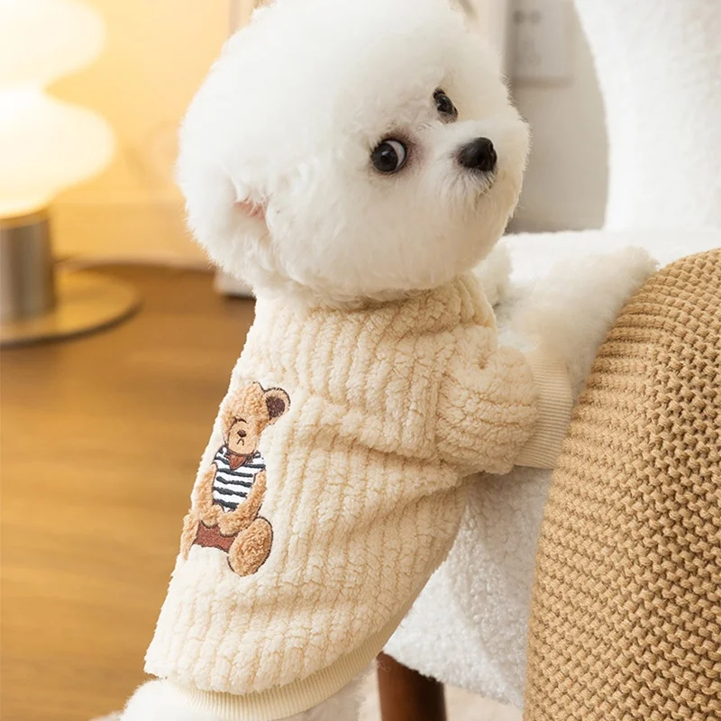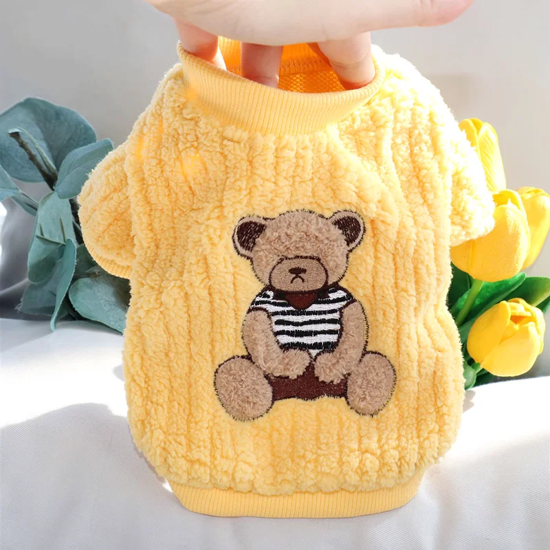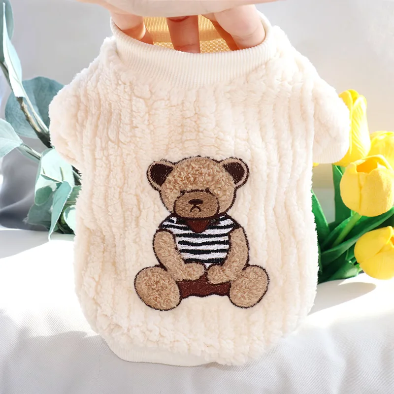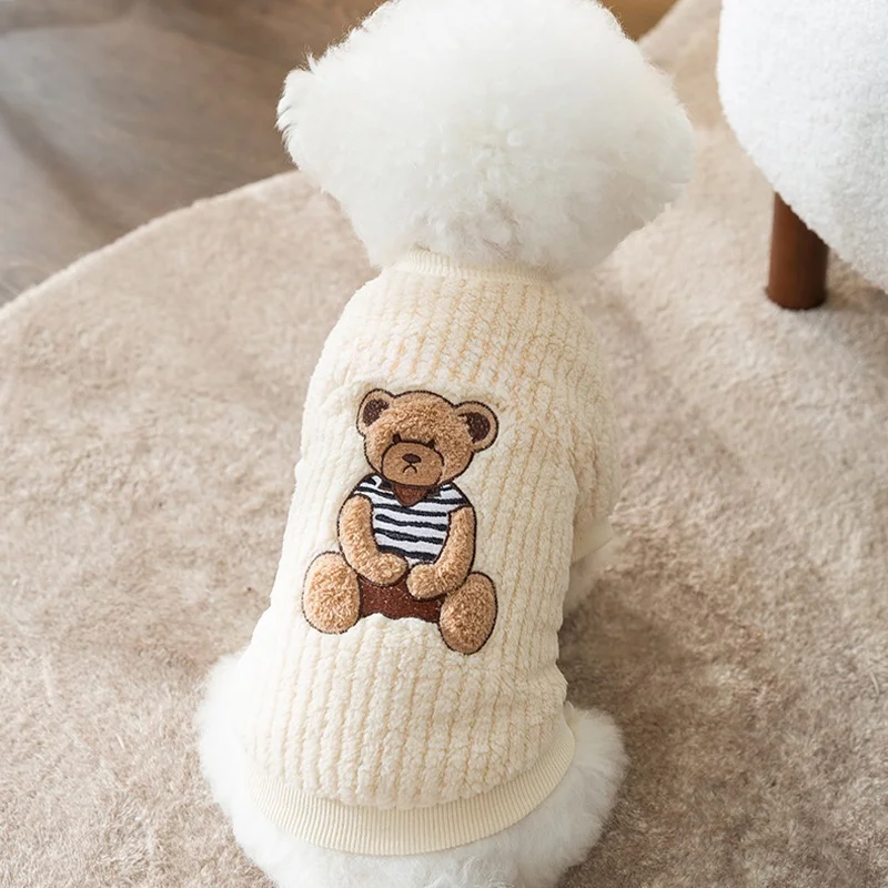 Sudadera con capucha cálida de invierno para perros pequeños, ropa suave para perros, sudadera para cachorros a la moda, jerséis con estampado de oso y gato, disfraz de caniche