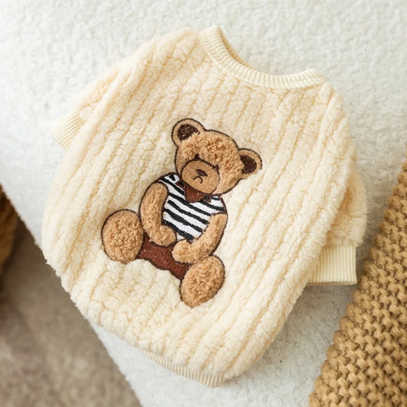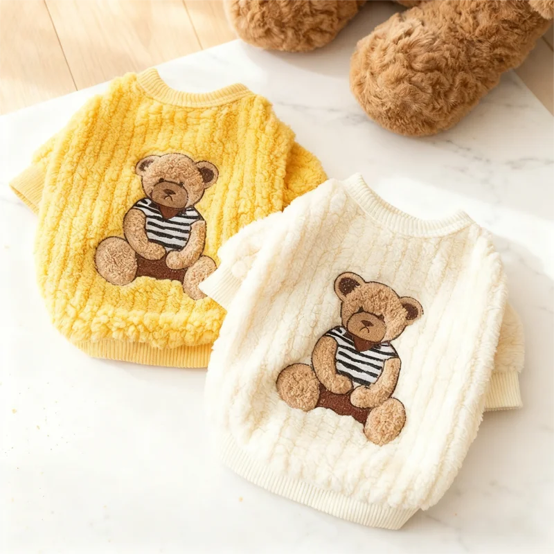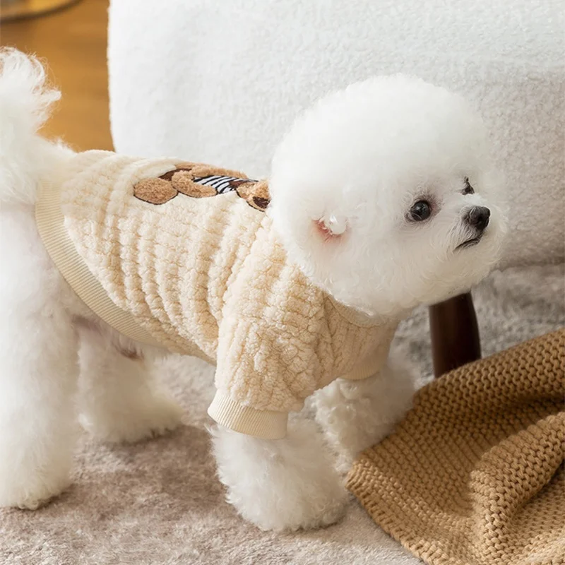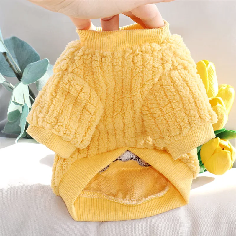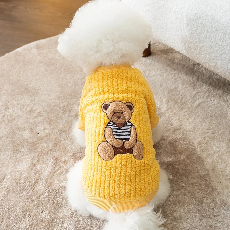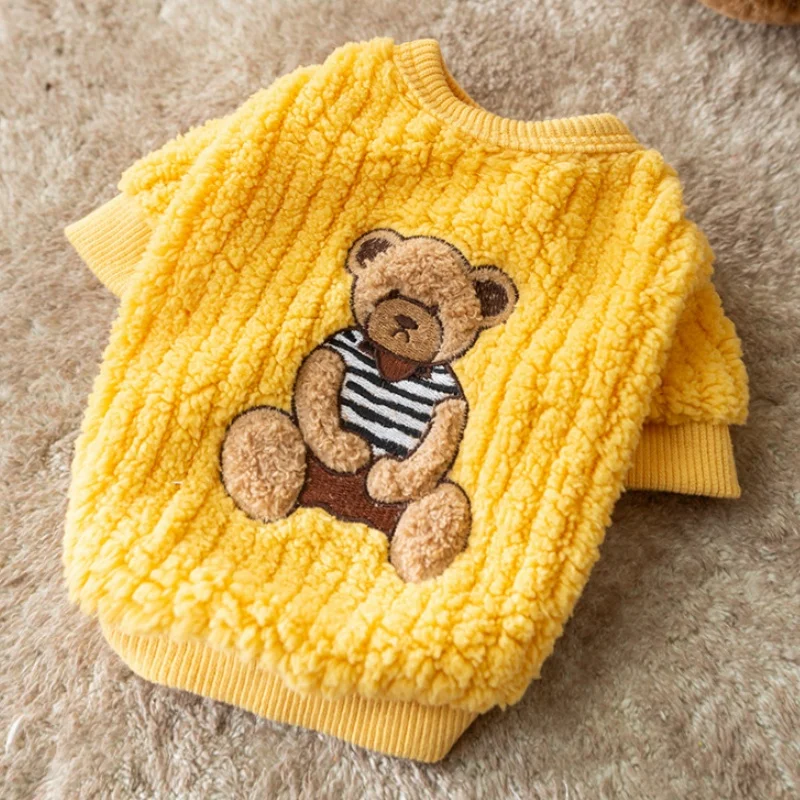 Sudadera con capucha cálida de invierno para perros pequeños, ropa suave para perros, sudadera para cachorros a la moda, jerséis con estampado de oso y gato, disfraz de caniche