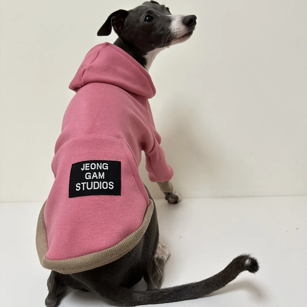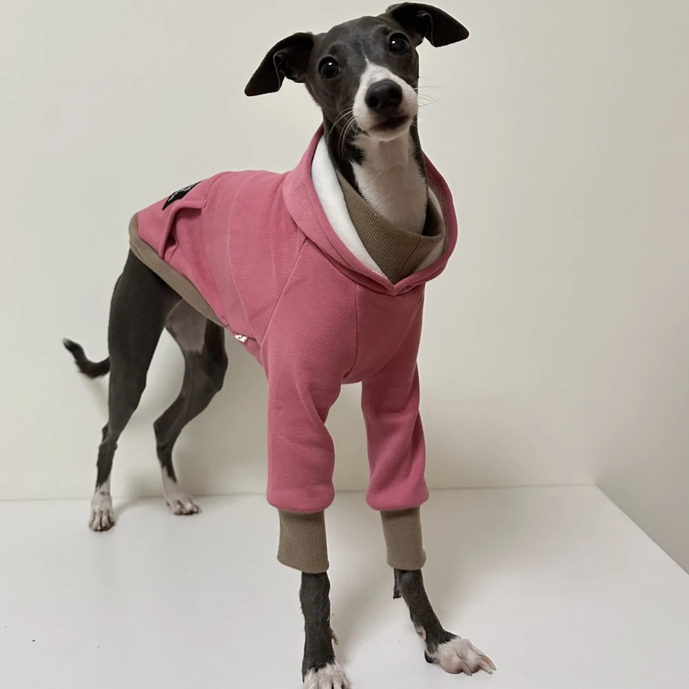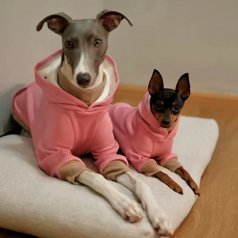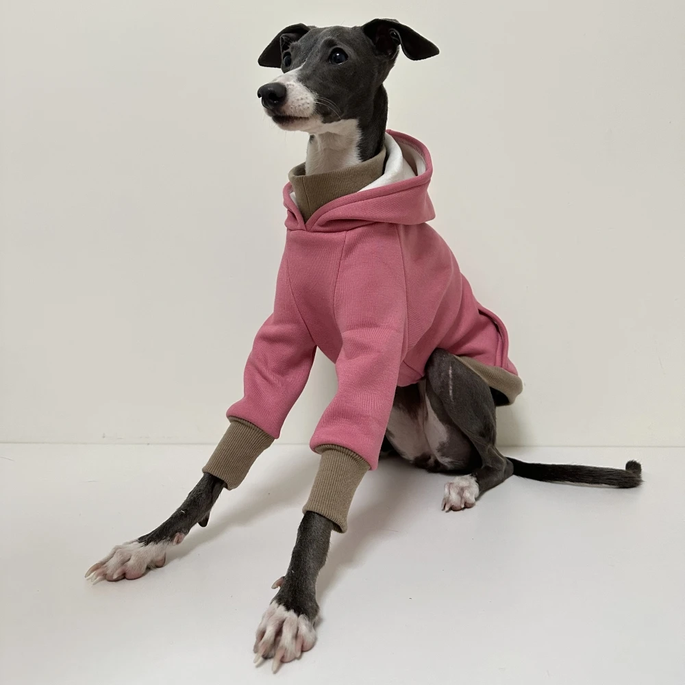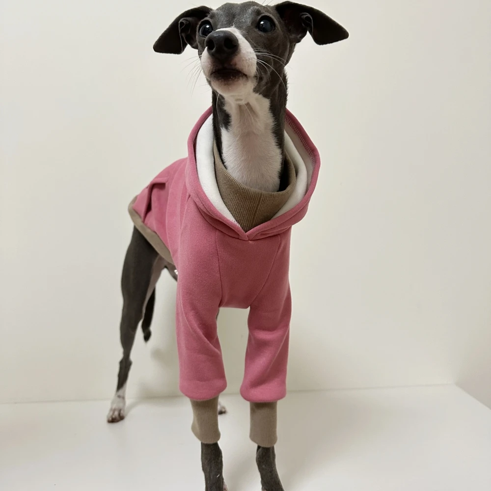 Sudadera con capucha cálida de vellón rosa roja para perro Abrigo suave de primavera otoño con bolsillo para pijama de ligo Little Greyhound Bedlington