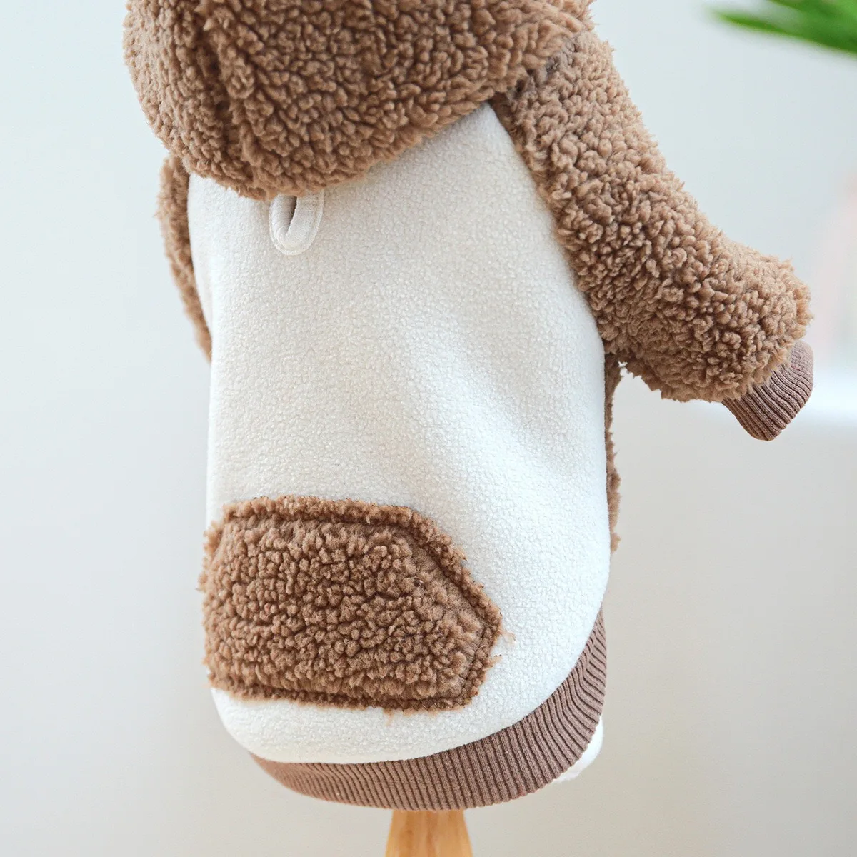 Sudadera con capucha de Color sólido para perros de compañía, ropa de invierno de lana suave para Bulldog Francés, sudadera protectora para exteriores para gatito maltés