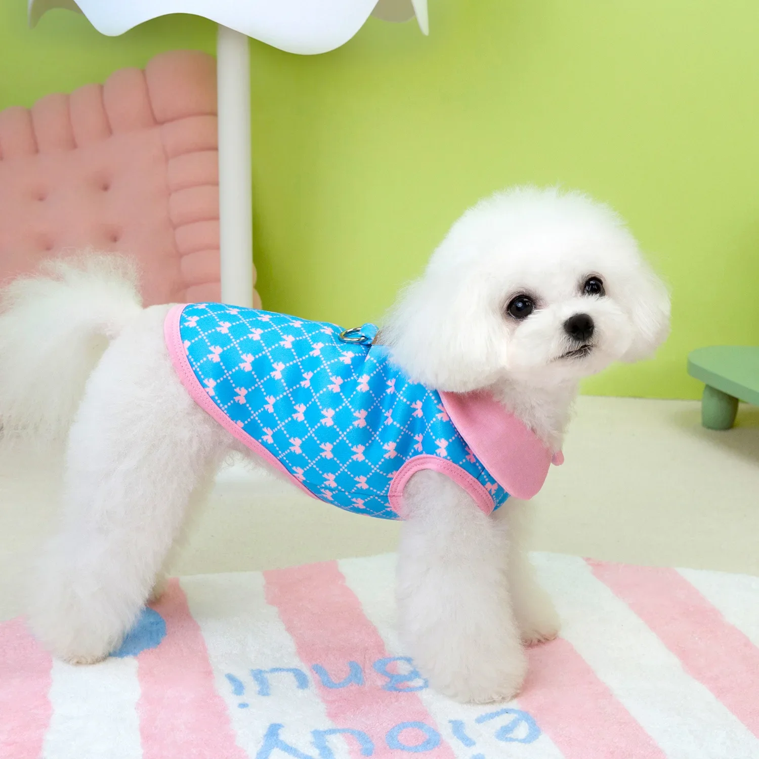 La ropa es bonita y agradable para usar en interiores. También tiene un lazo para caminar, así que está bien. La ropa parece un poco más grande de lo esperado.