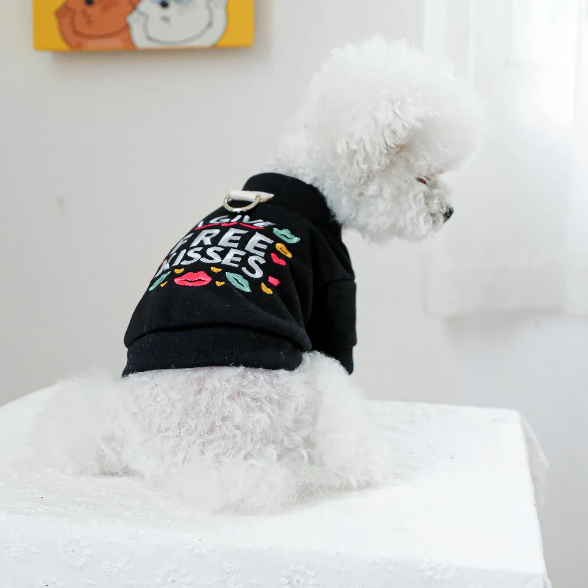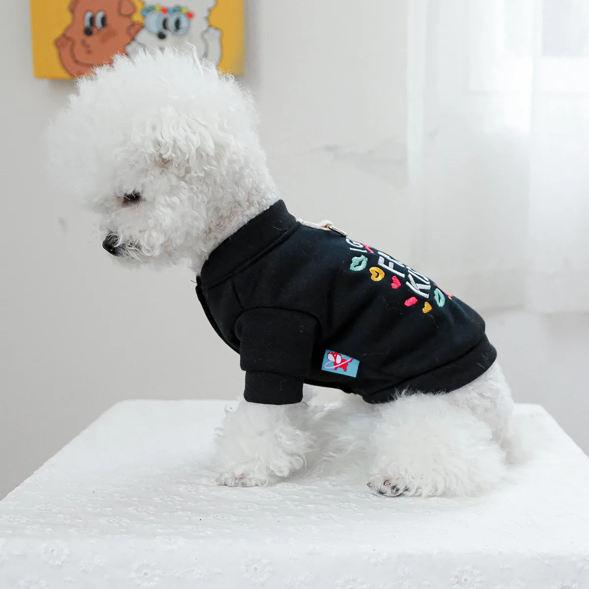 Sudadera con capucha de cuello alto para mascotas, chaqueta de Jersey para mascotas, ropa de otoño e invierno, Sudadera con capucha bordada, ropa para cachorros
