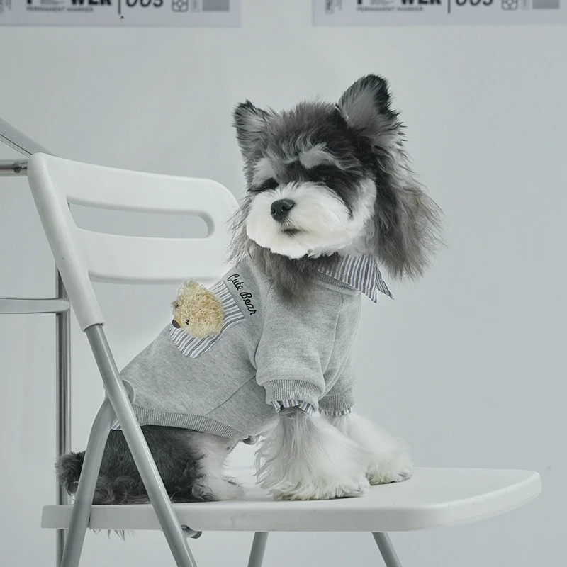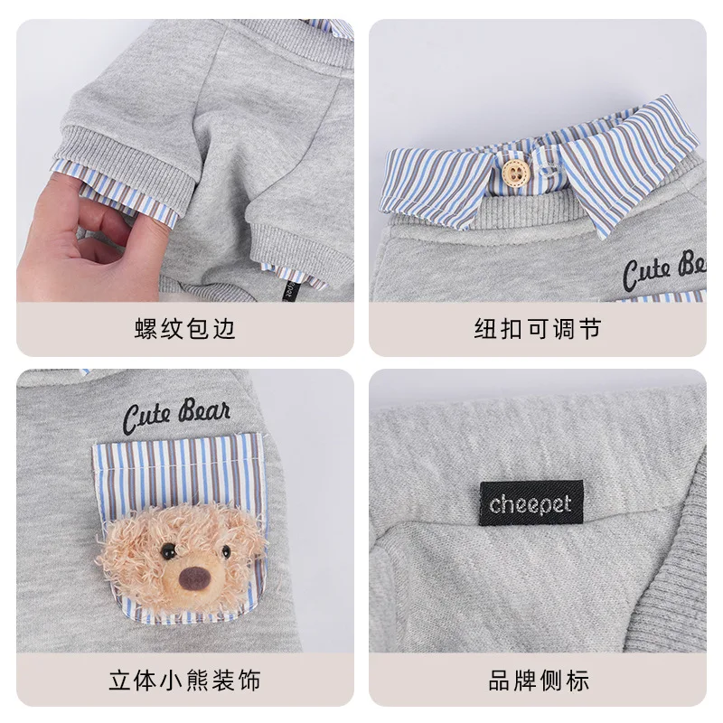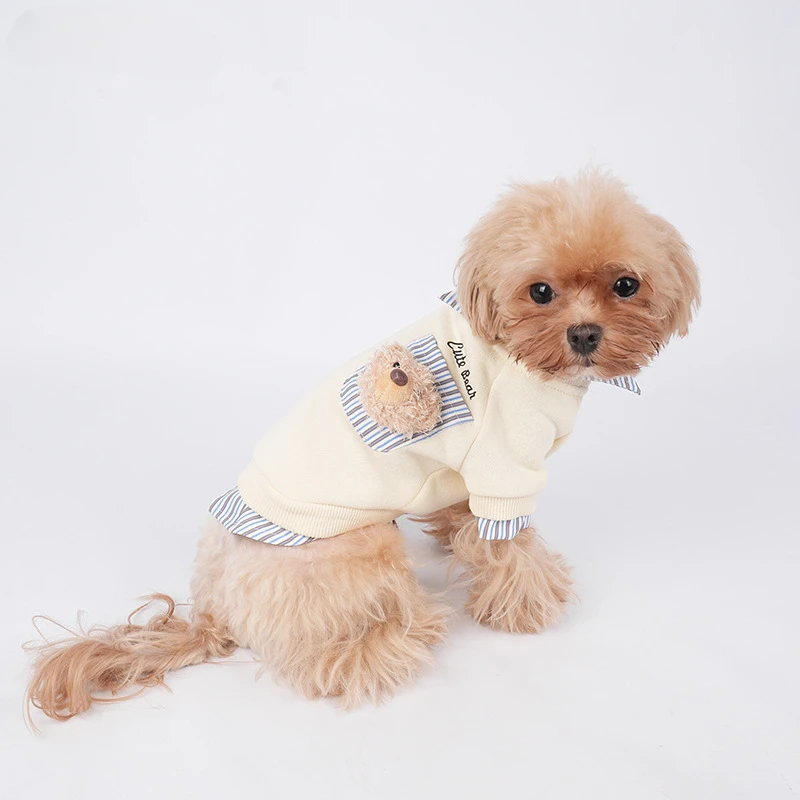 Sudadera con capucha de dos piezas para mascotas, camisa de solapa a rayas, sudadera con capucha empalmada, camisa Base para perros pequeños y osos, ropa para vacaciones de otoño e invierno
